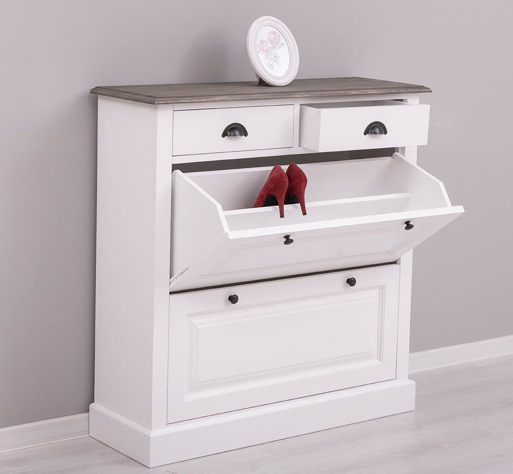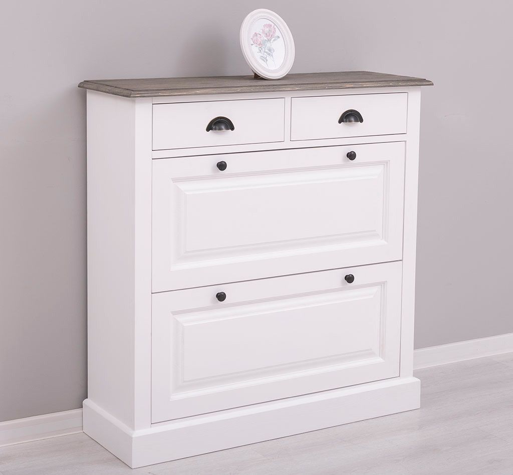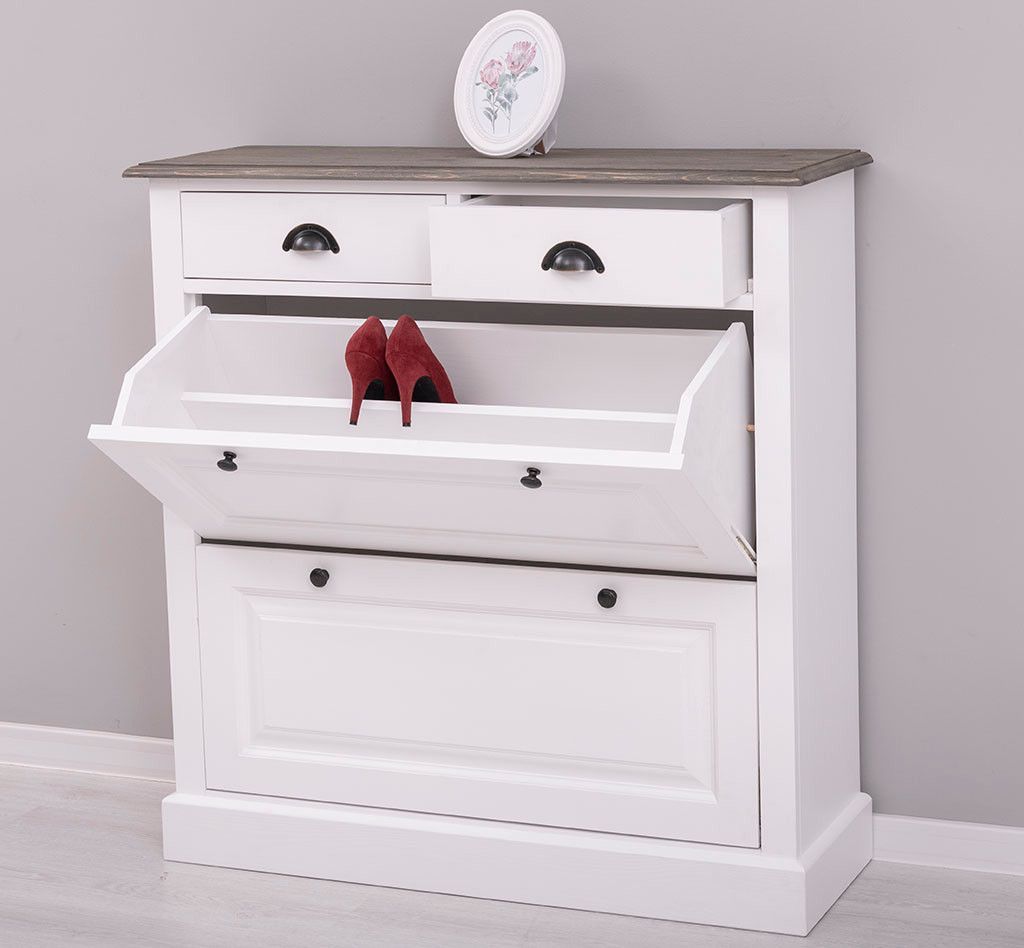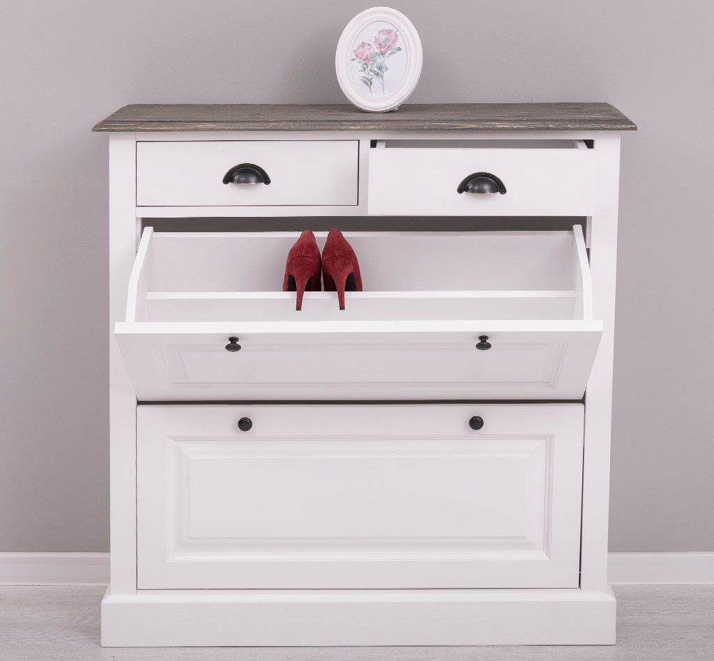 Schmaler Schuhkipper mit Schublade weißer Schuhschrank Landhaus Schukipper Massiv
