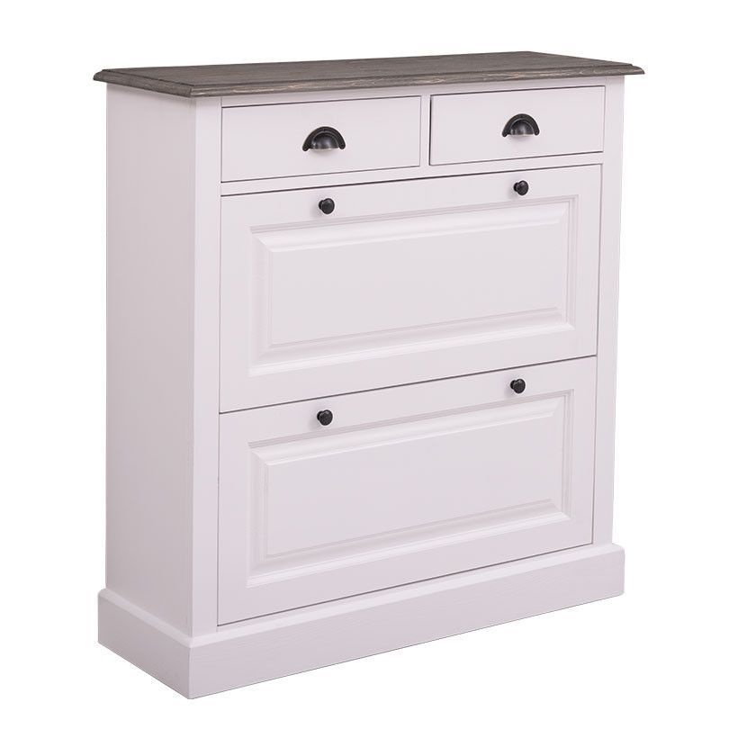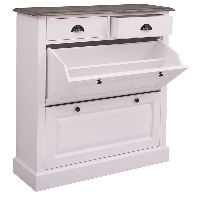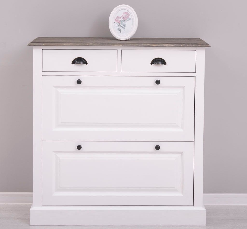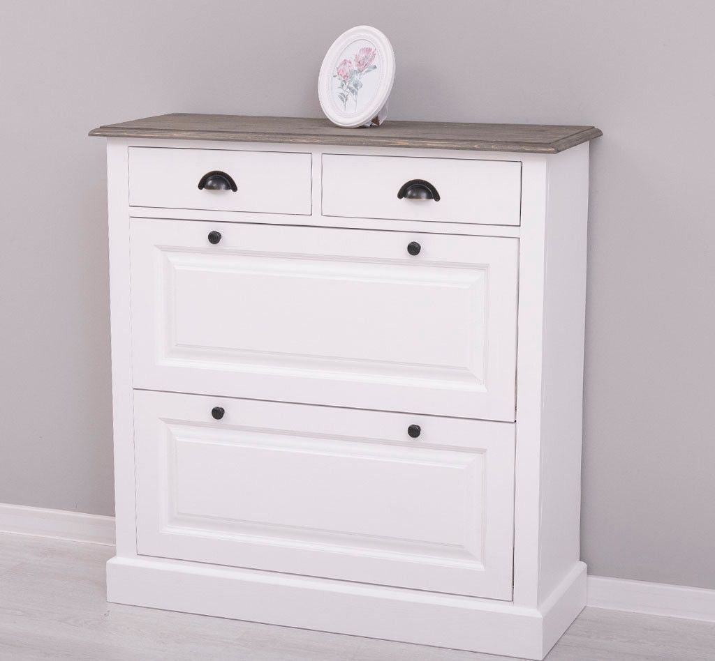 Schmaler Schuhkipper mit Schublade weißer Schuhschrank Landhaus Schukipper Massiv