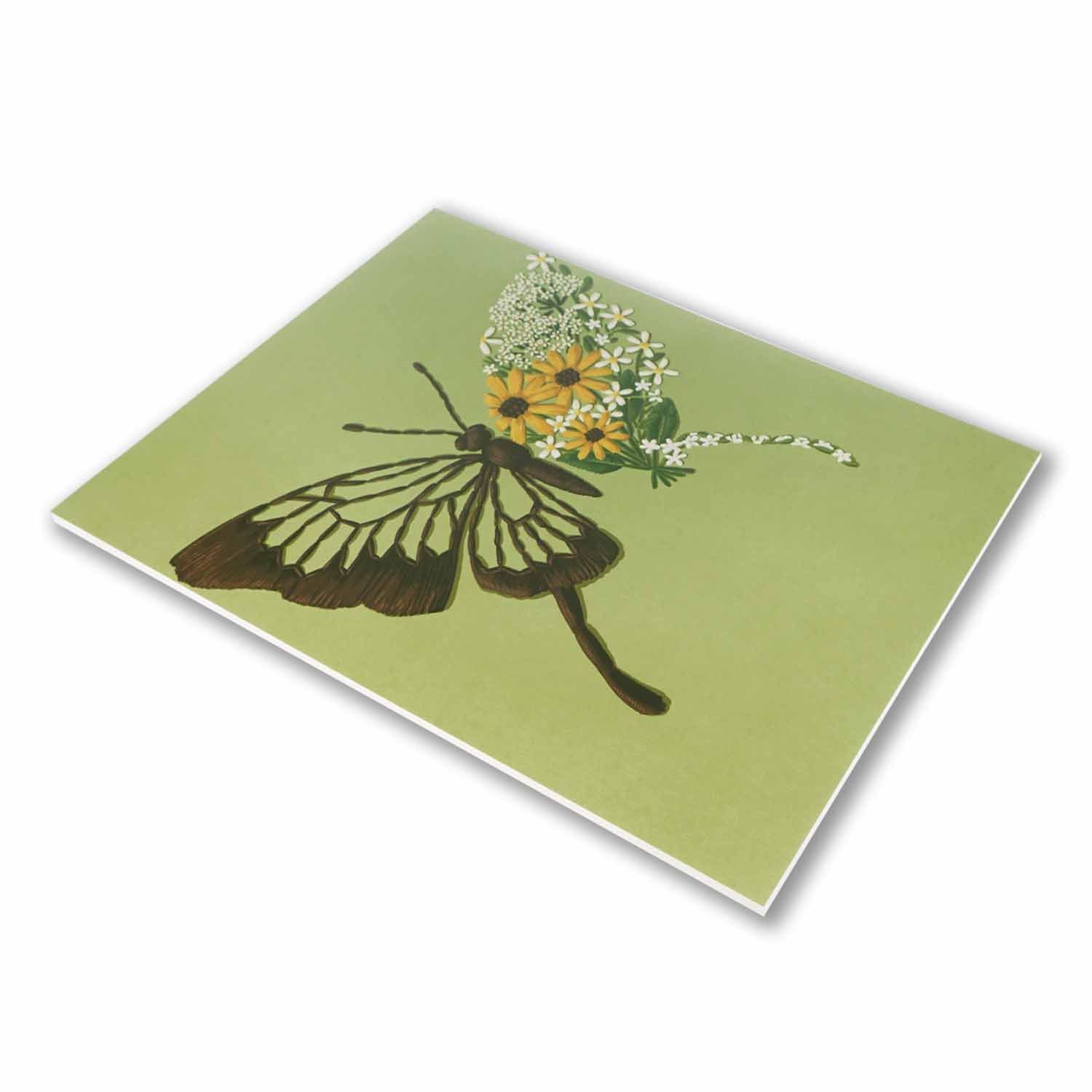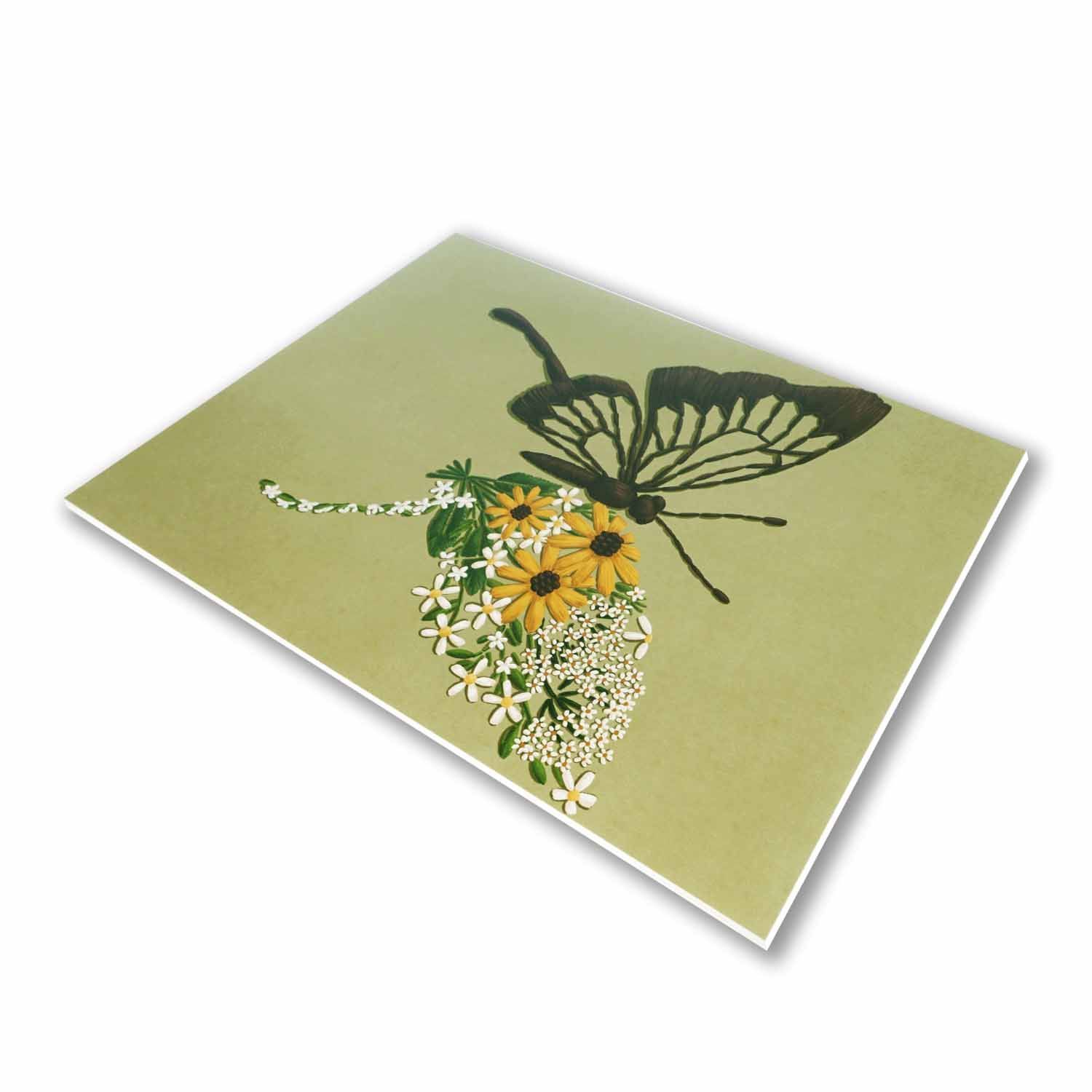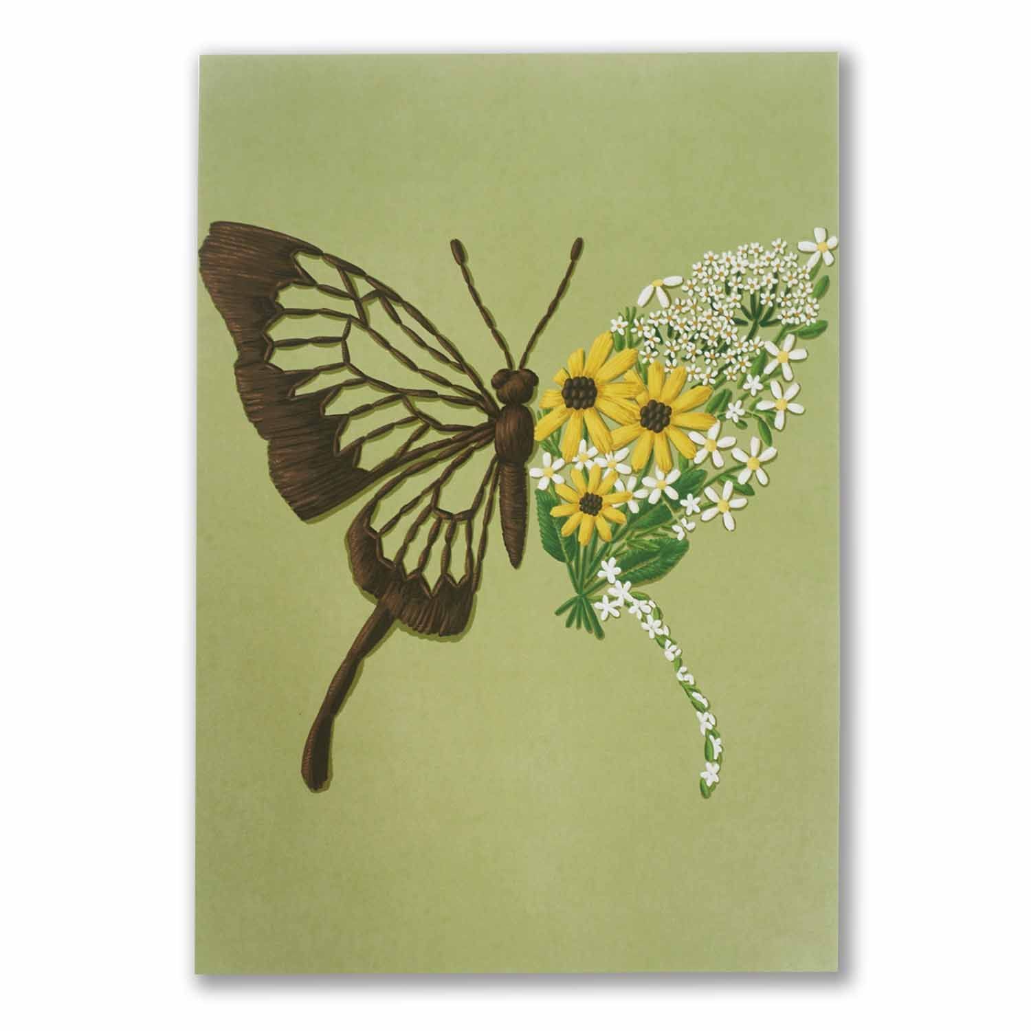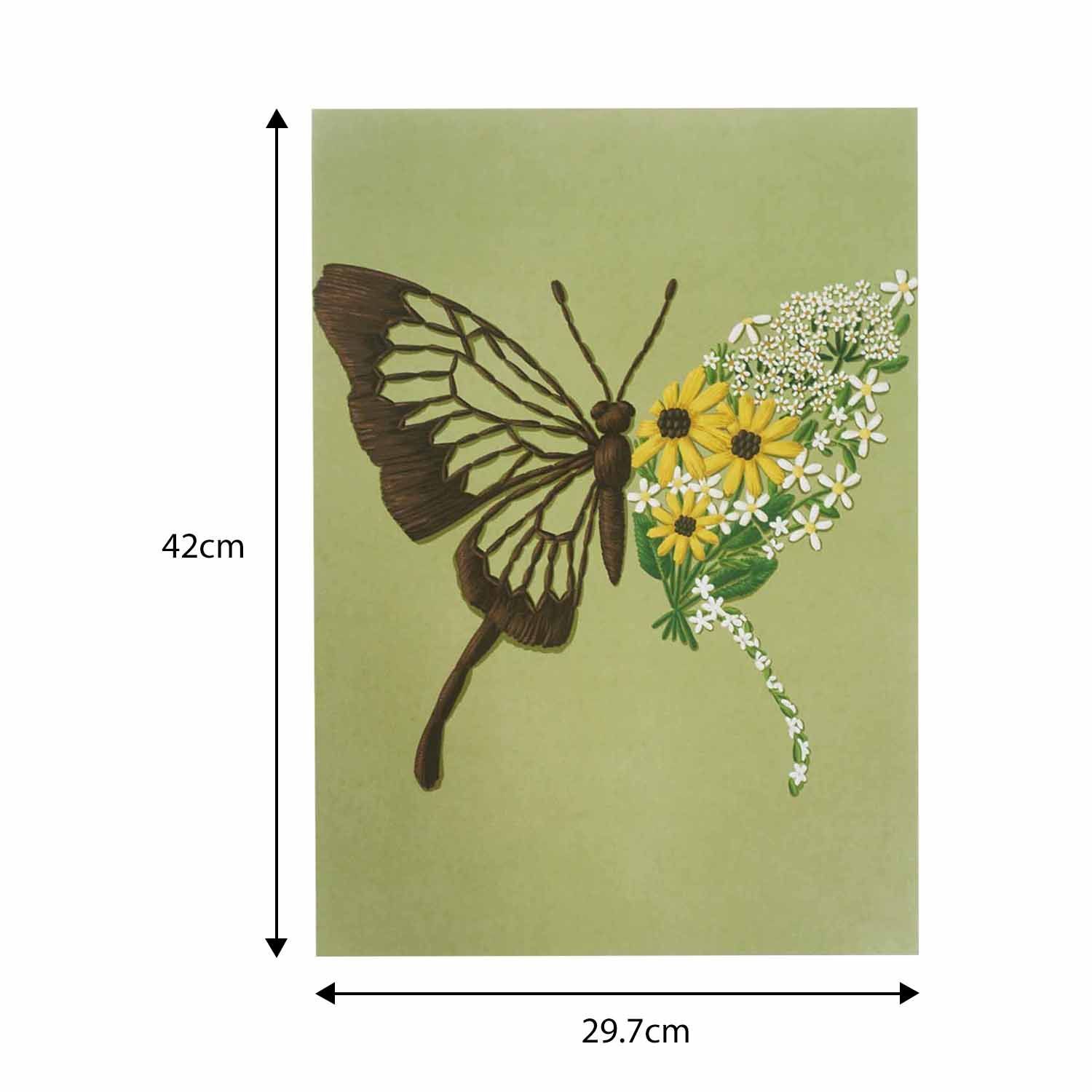 Schmetterling & Blumen Wandbild im Stickerei Stil | Natur Poster auf Hartschaumplatte