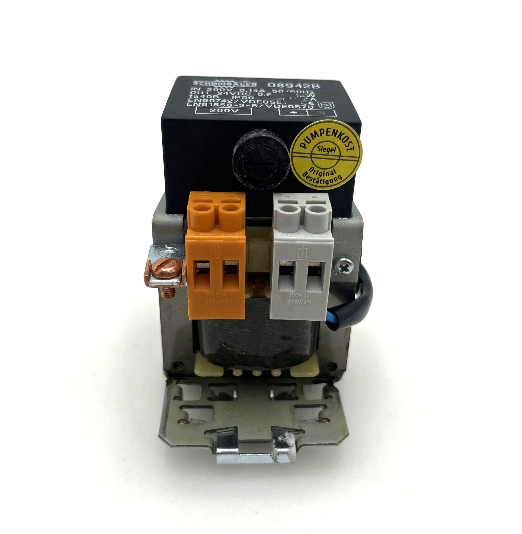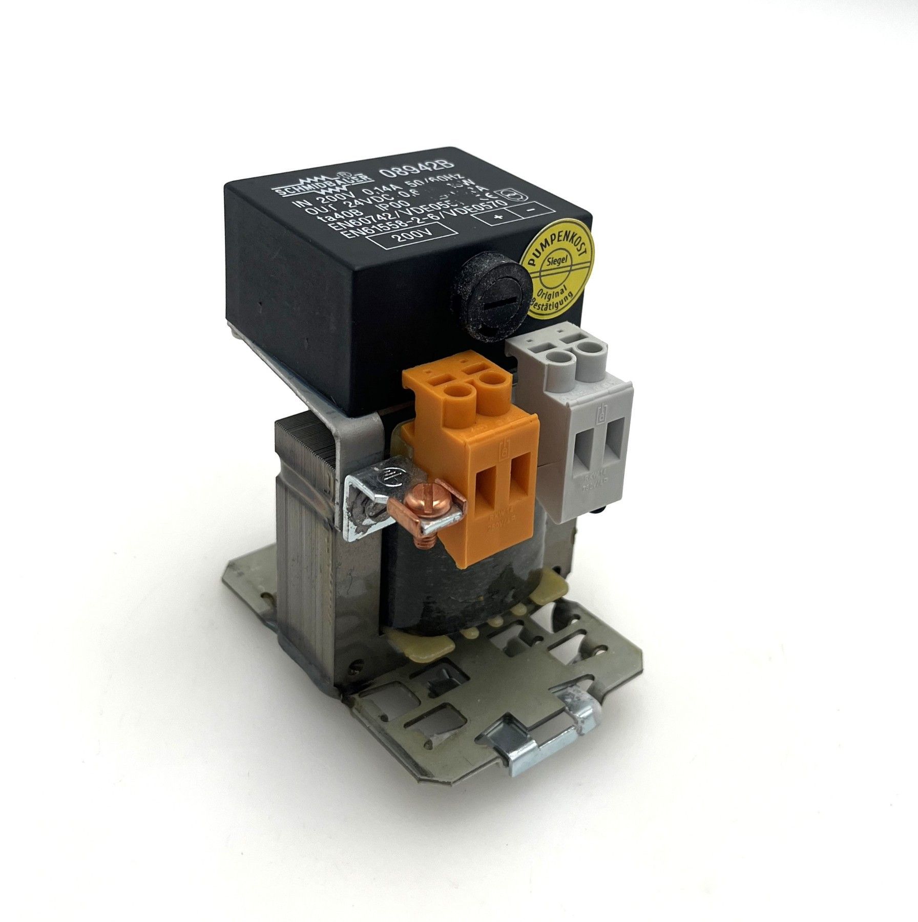 Schmidbauer 08942B Transformator – 200 V auf 24 V DC, 15 W Trafo Der Transformator Schmidbauer 08942B ist ein kompakter und zuverlässiger Netztransformator zur Spannungswandlung in elektrischen Steuerungs- und Versorgungsanwendungen. Er wandelt eine Primärspannung von 200 V in eine Sekundärspa