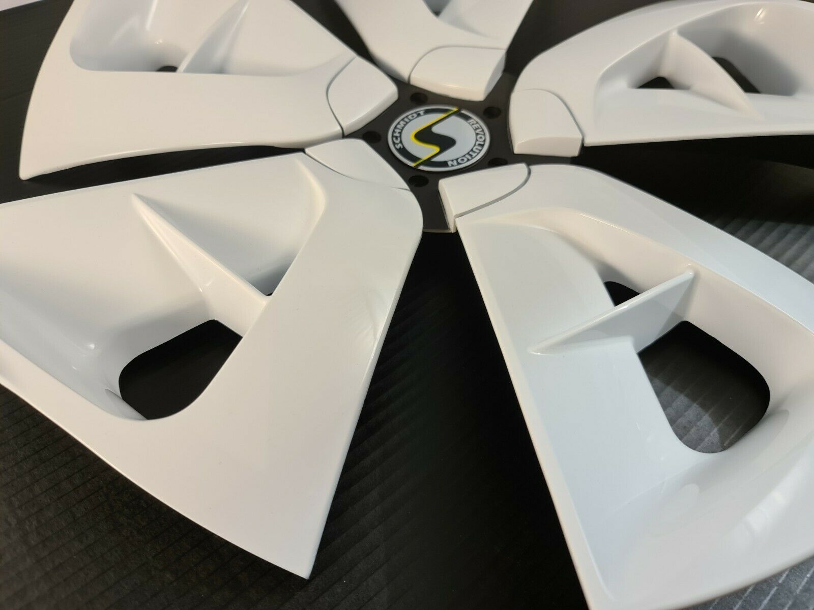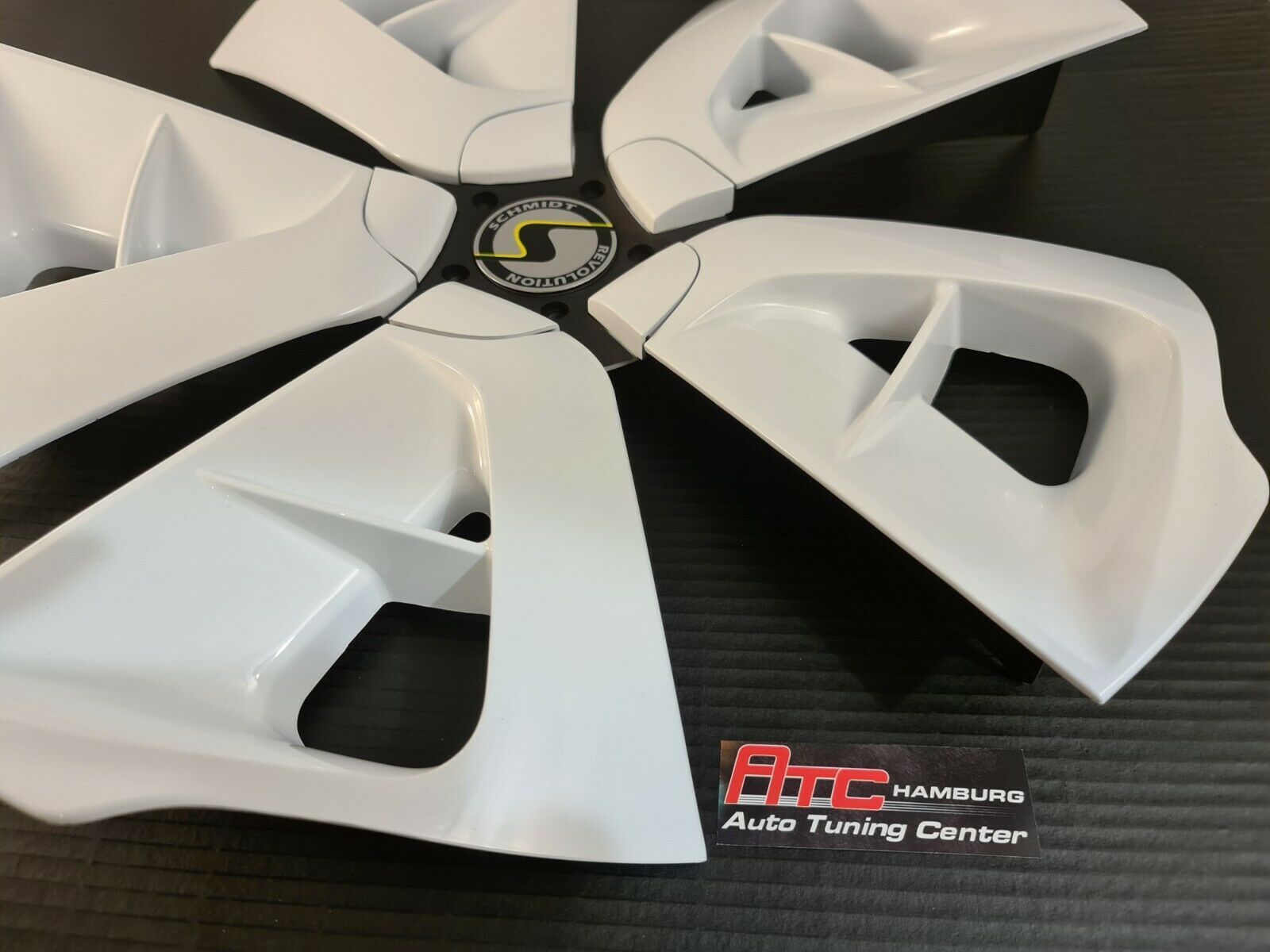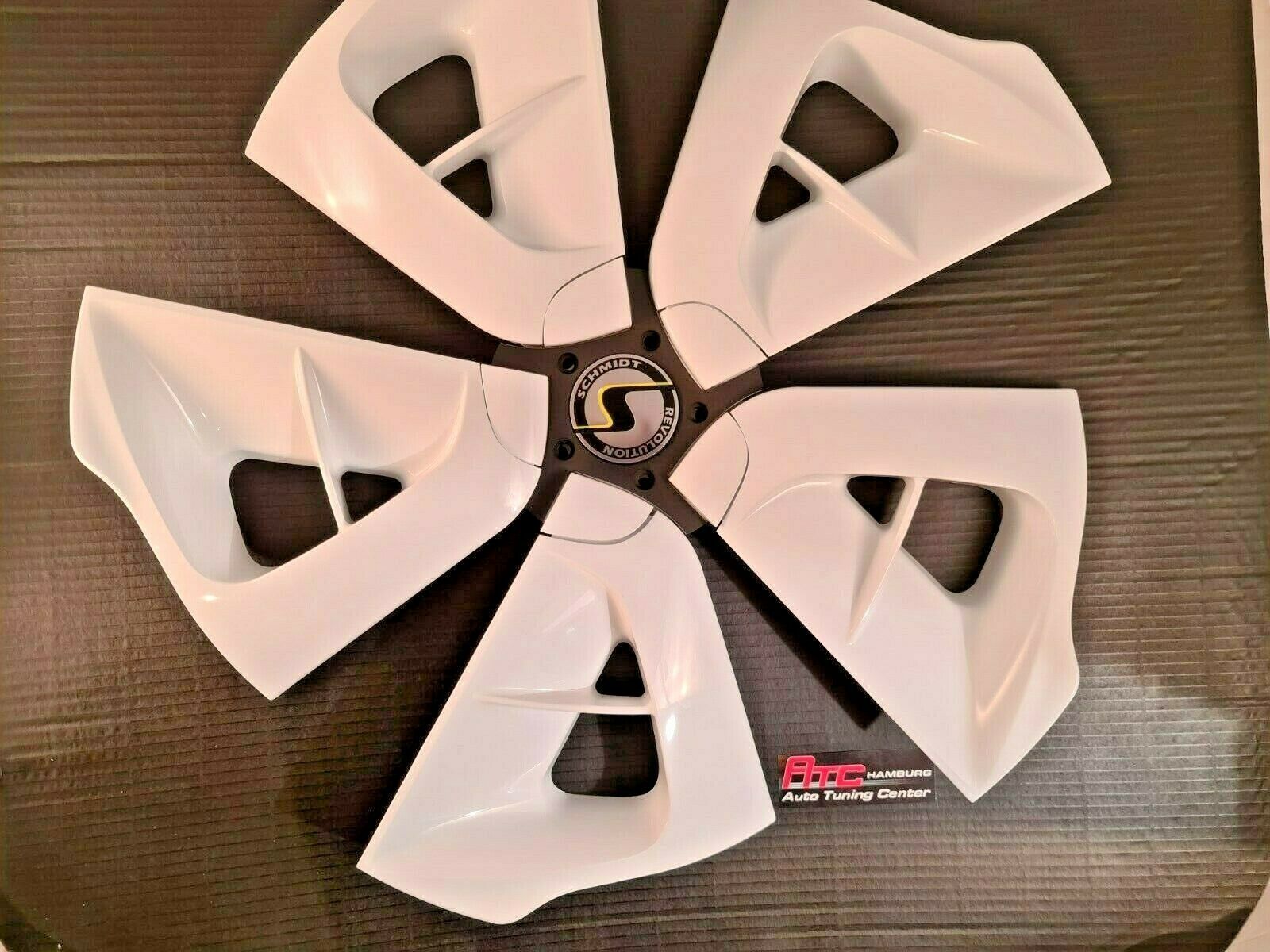 Artikelbezeichnung 1 Stück Schmidt Dekor-Set Für Schmidt Model Cirrus Alufelge Alufelgen 1 Satz = 6 Stück Teile, bestehend aus dem Stern mit 1x Logo, und 5x Flügel Für 20 Zoll Schmidt Cirrus Felgen • Dekor -Set in Hochglanz Weiß-Schwarz, mit Logo in Chrom Silber Wir bieten bei Bedarf auch die Rearbr