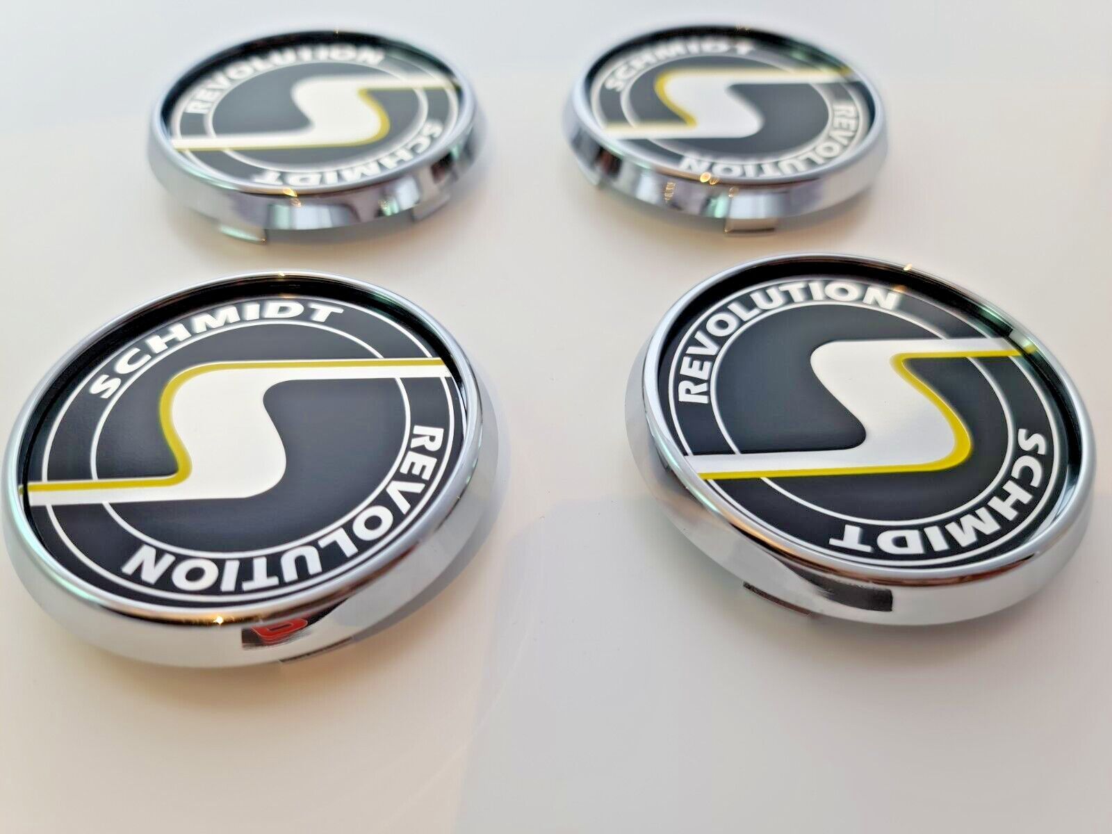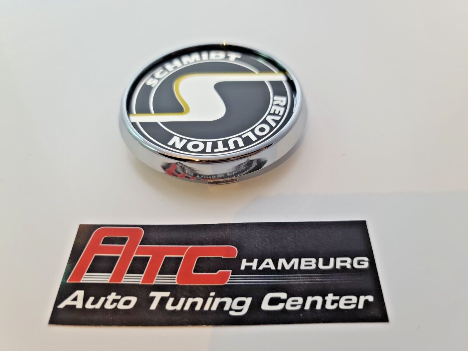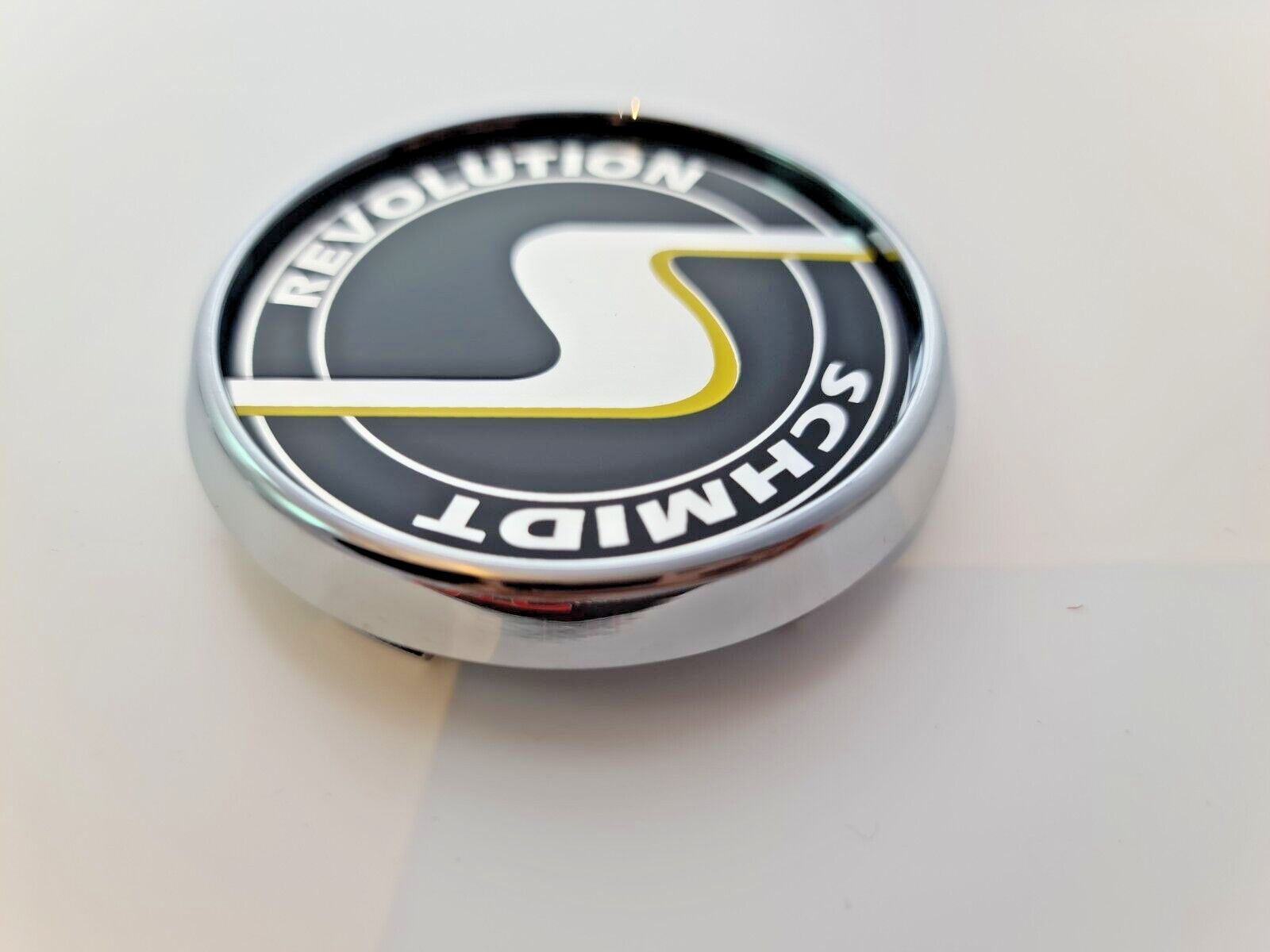 Artikelbezeichnung Schmidt Nabendeckel SC3 Chrom, Emblem in Schwarz 1 Satz = 4 Stück 63,3mm Felgenbohrung - Mitte Für Schmidt Felgen mit 63,3mm Innenbohrung Gesamtgröße der Kappe Deckel über alles sind: 70mm ZB. geeignet für Felgen Design: Modern-Line, Space-Line, 20 und 21 Zoll Gambit, MX-Line, TH-