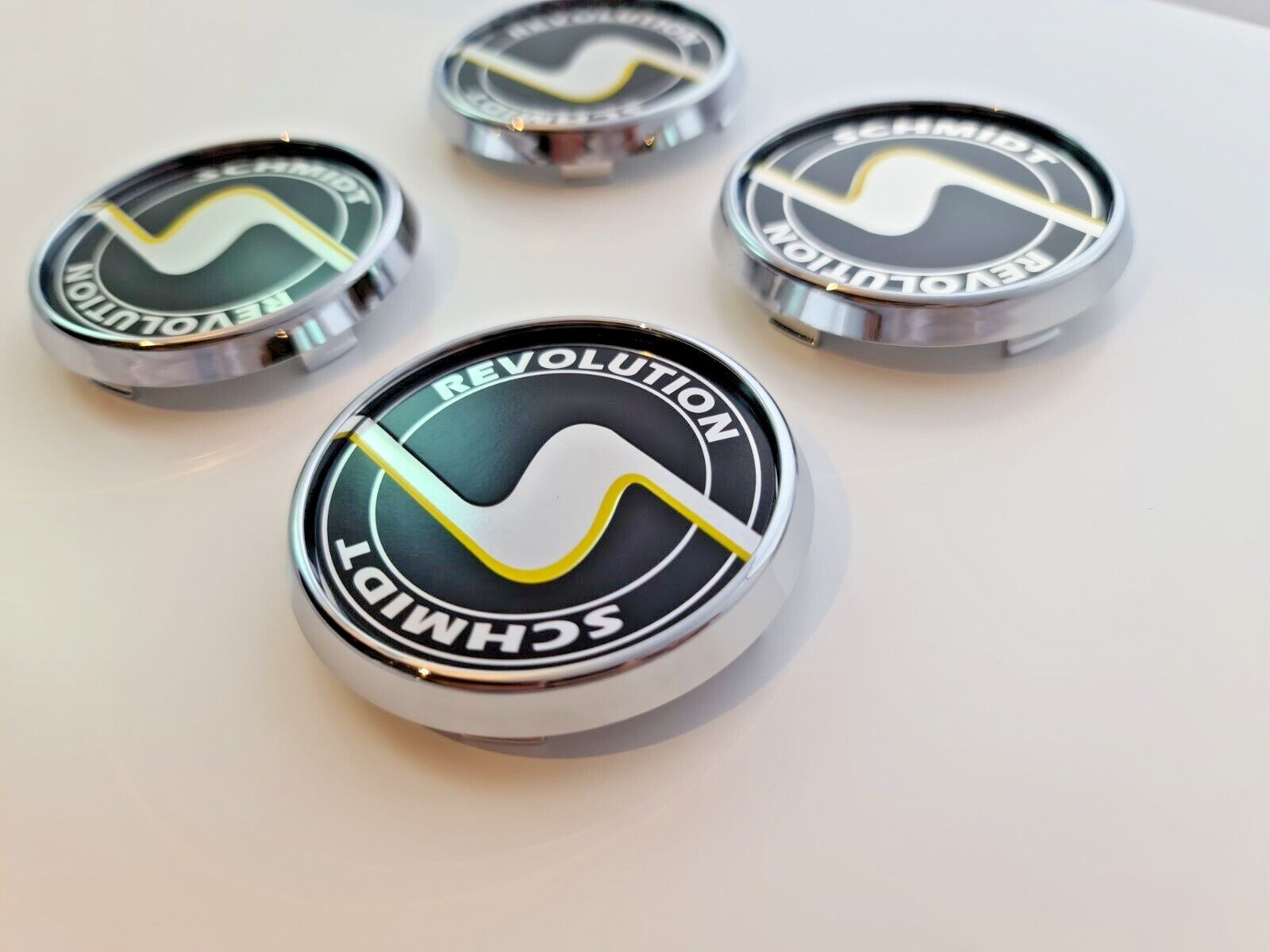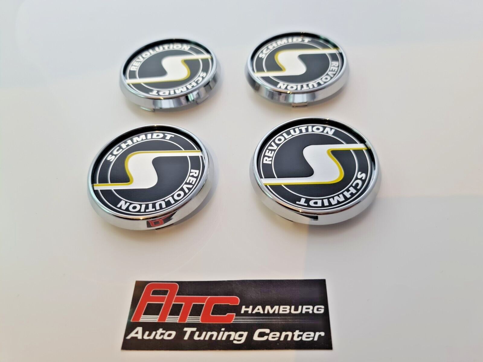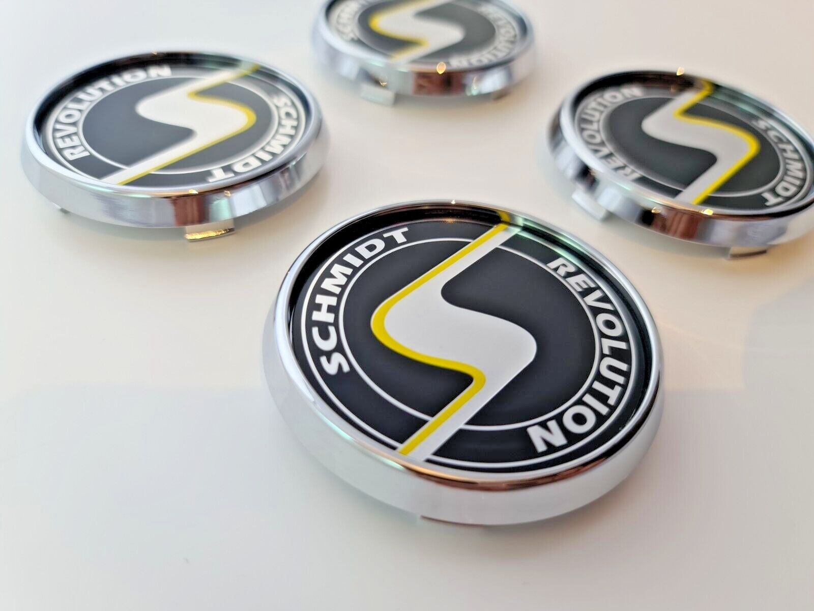 Artikelbezeichnung Schmidt Nabendeckel SC3 Chrom, Emblem in Schwarz 1 Satz = 4 Stück 63,3mm Felgenbohrung - Mitte Für Schmidt Felgen mit 63,3mm Innenbohrung Gesamtgröße der Kappe Deckel über alles sind: 70mm ZB. geeignet für Felgen Design: Modern-Line, Space-Line, 20 und 21 Zoll Gambit, MX-Line, TH-