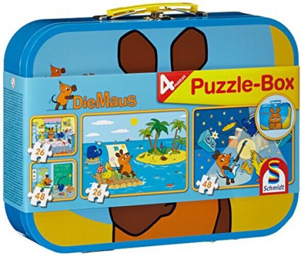 Schmidt Spiele 55597 Die Sendung mit der Maus 4er Kinder-Puzzle-Box Metallkoffer