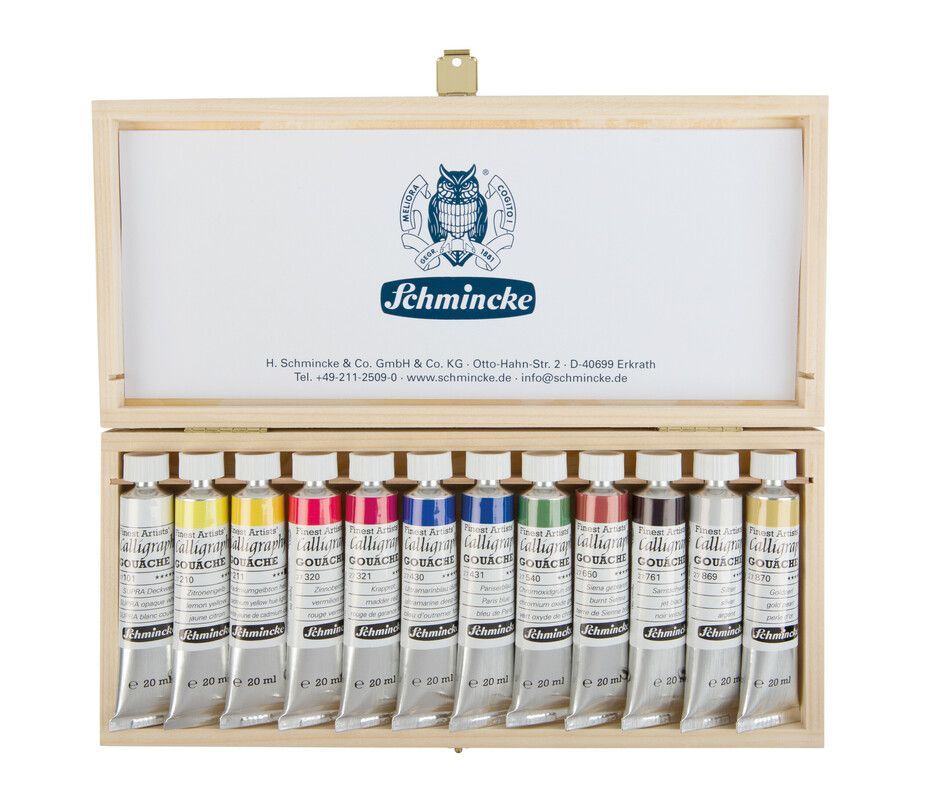 Schmincke Calligraphy Gouachefarben im Holzkasten, 12 x 20ml
