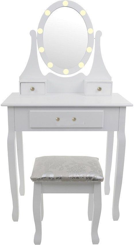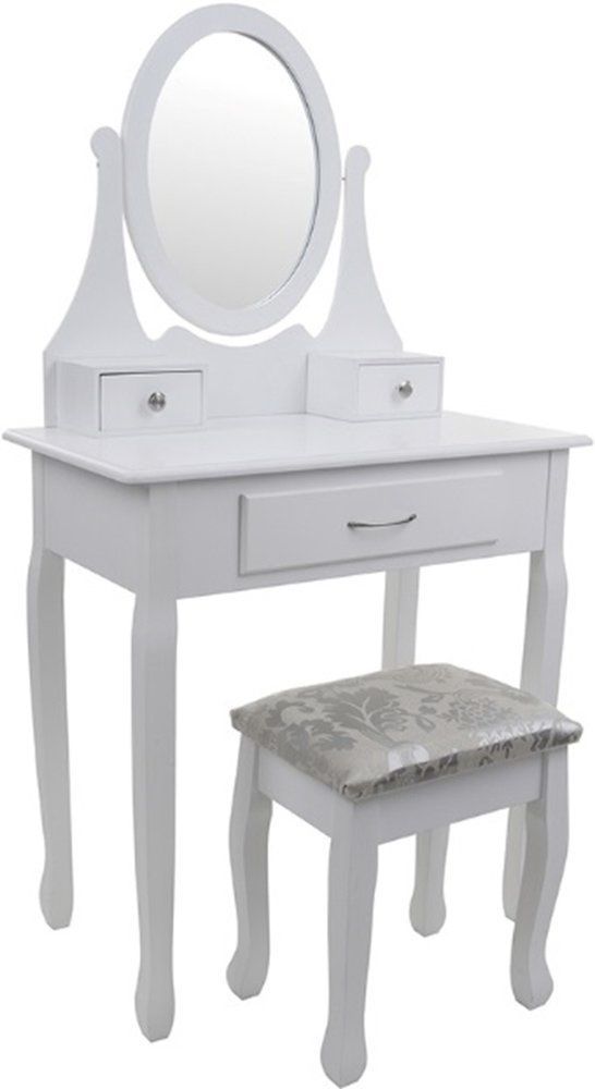 Schminktisch aus Holz weiß - mit Spiegel und passendem Hocker - 3 Schubladen
