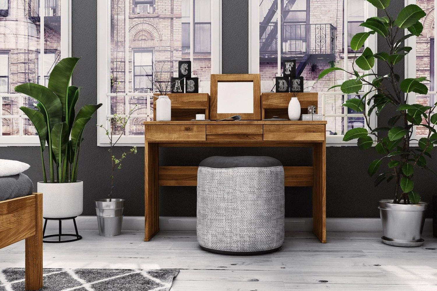 Schminktisch Bento aus Wildeiche massiv 115x45x113 mit 5 Schubladen und Spiegel