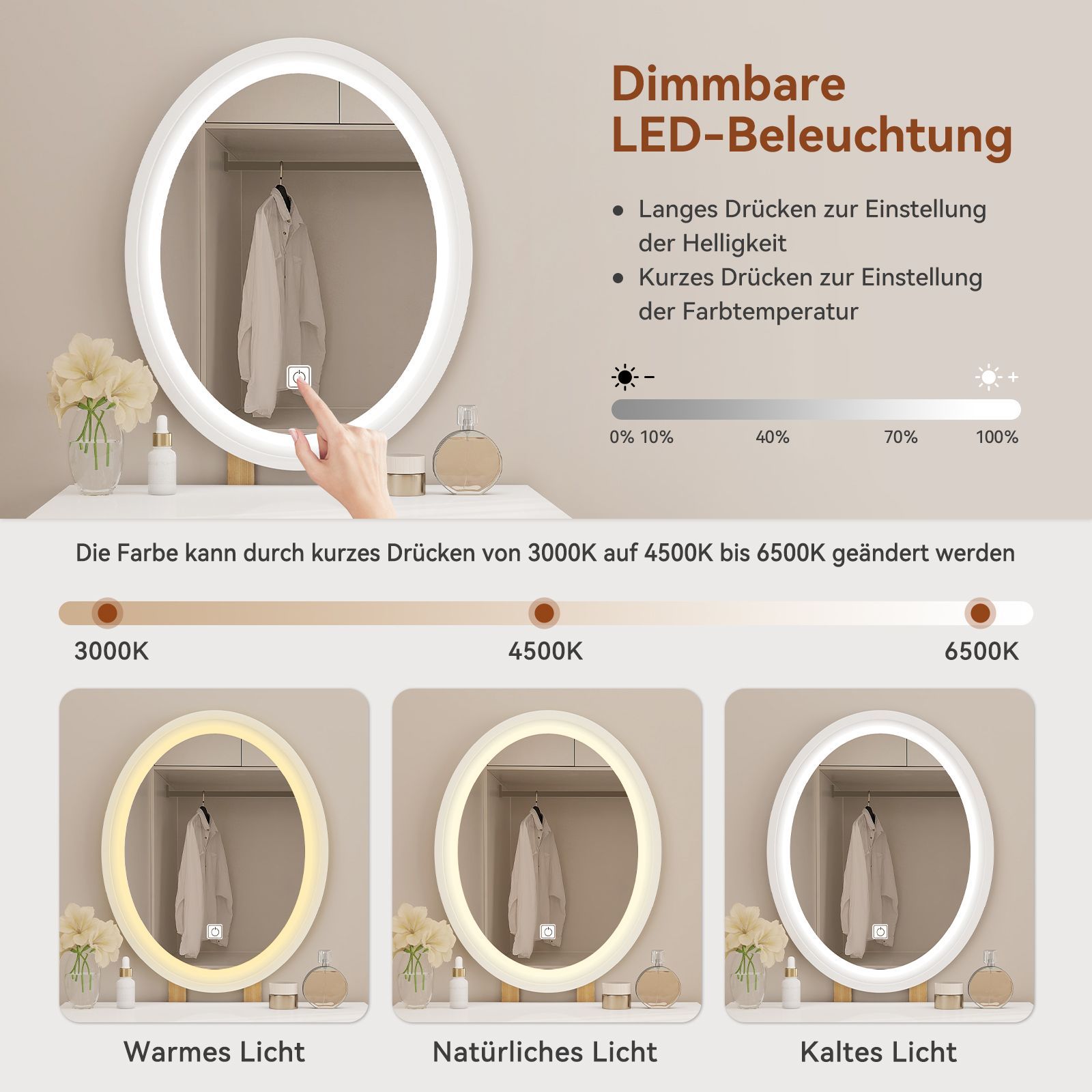 Schminktisch Frisiertisch Kosmetiktisch mit Beleuchtung Spiegel Hocker Schublade