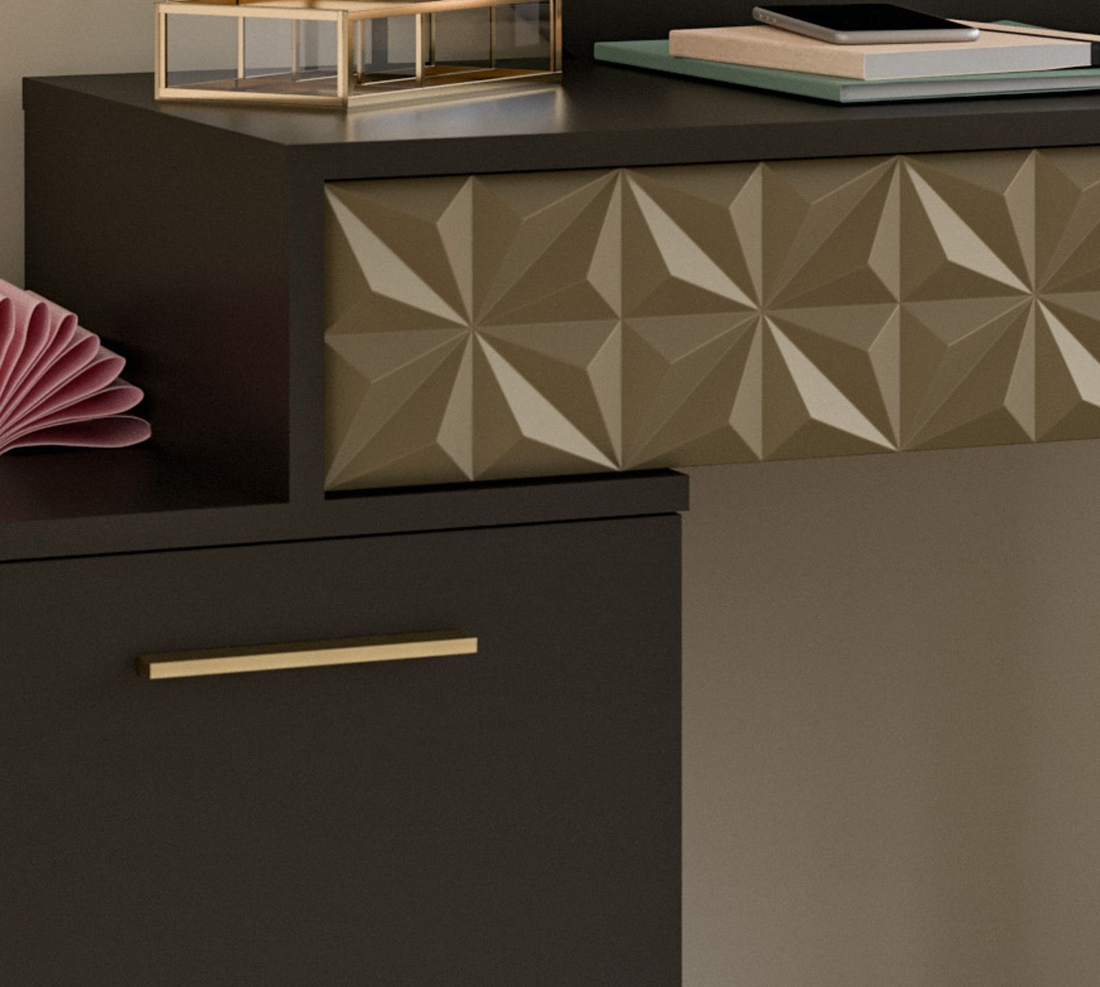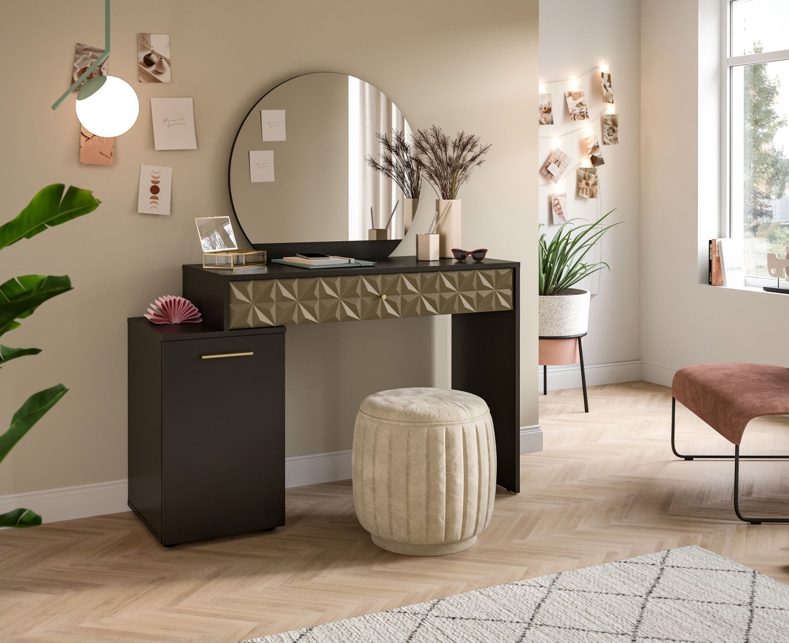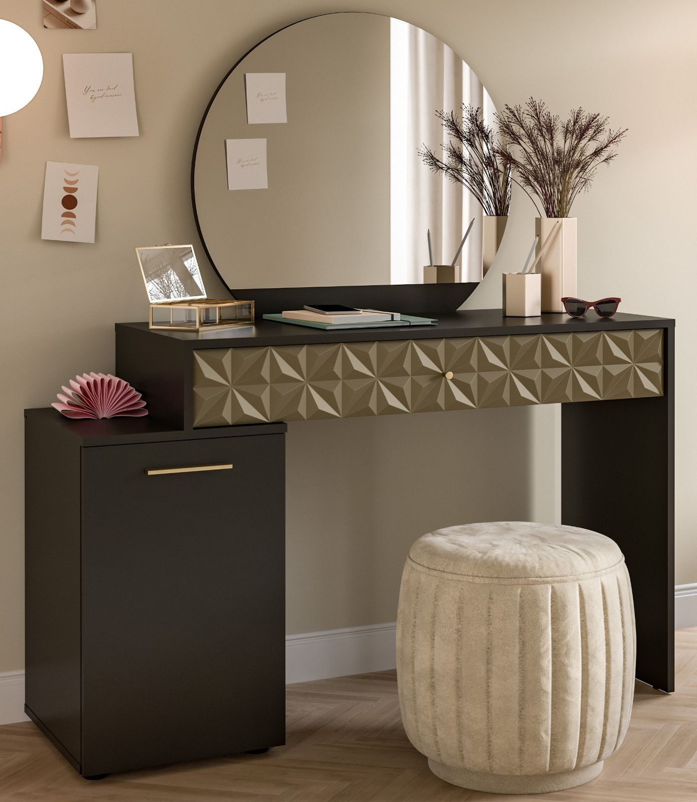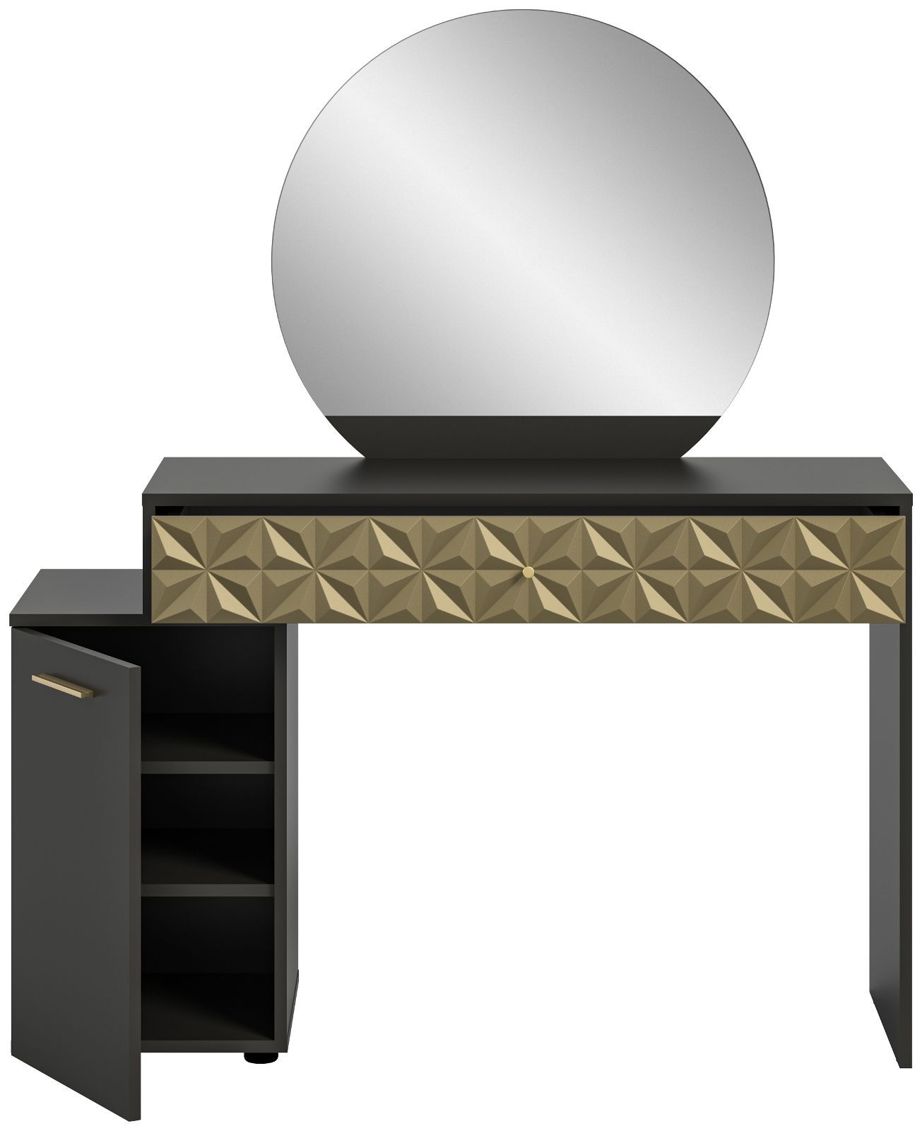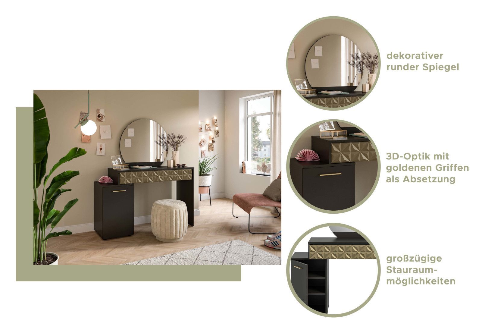 Schminktisch in schwarz Gold Schminkkommode mit Spiegel Kosmetiktisch 117 cm Relief