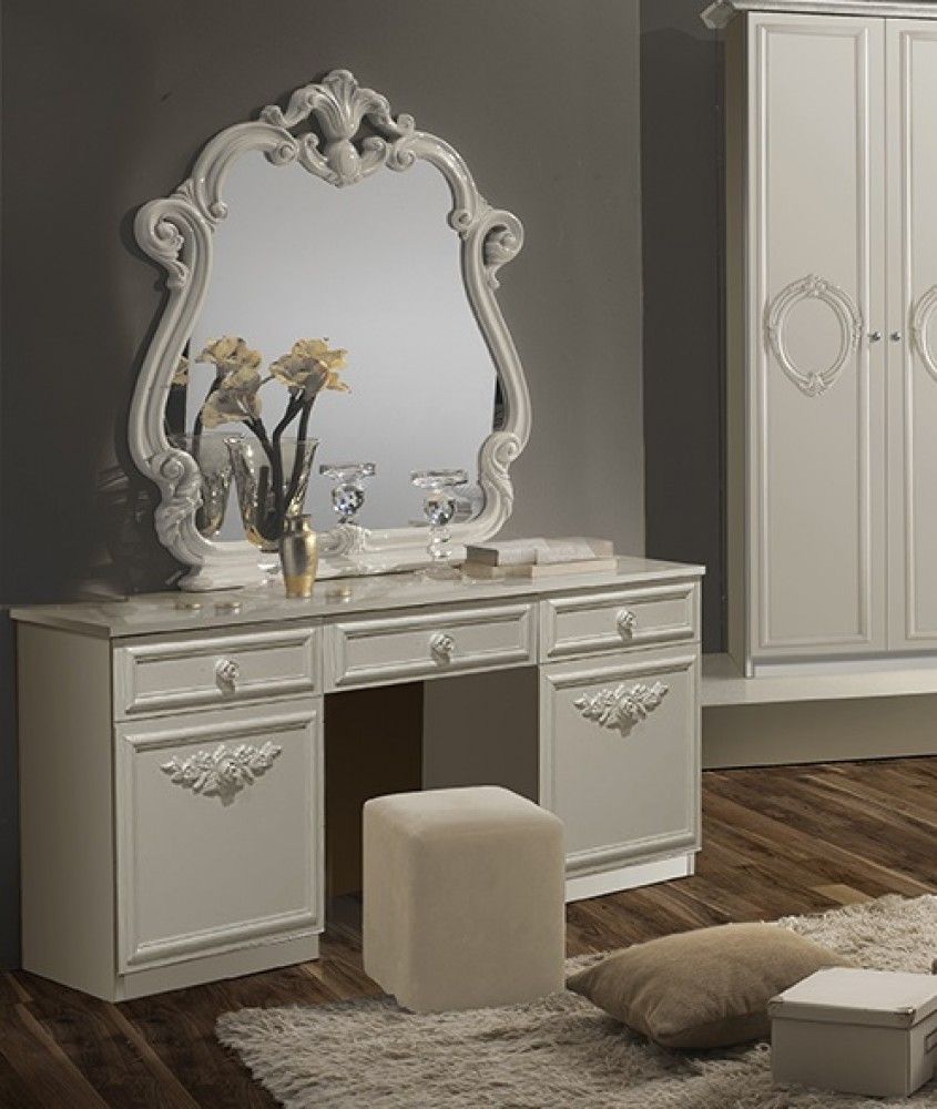 Schminktisch Kommode mit Spiegel Letizia in Weiß Creme Barock Nora
