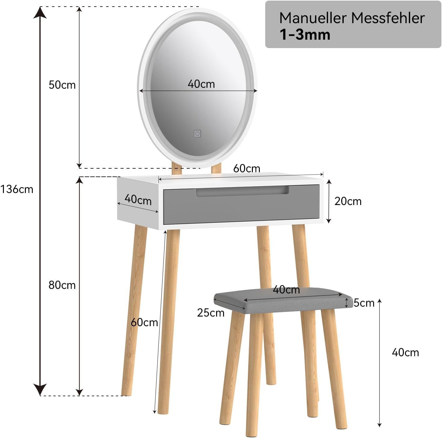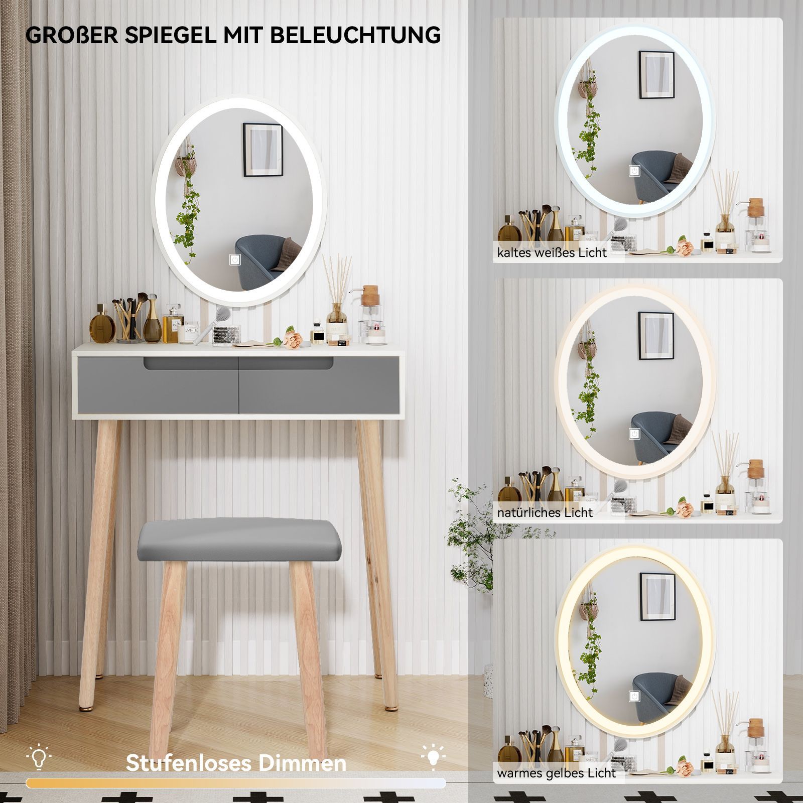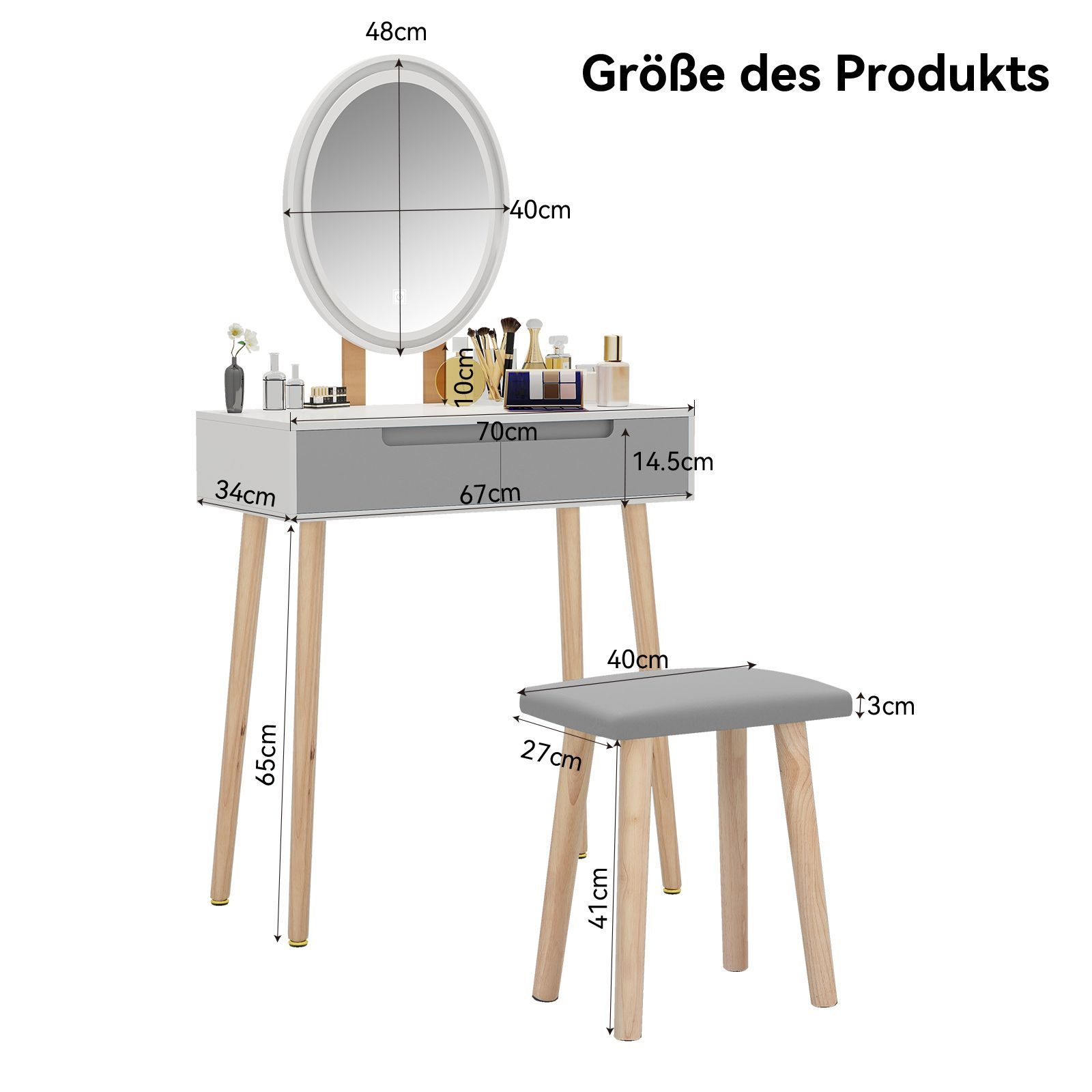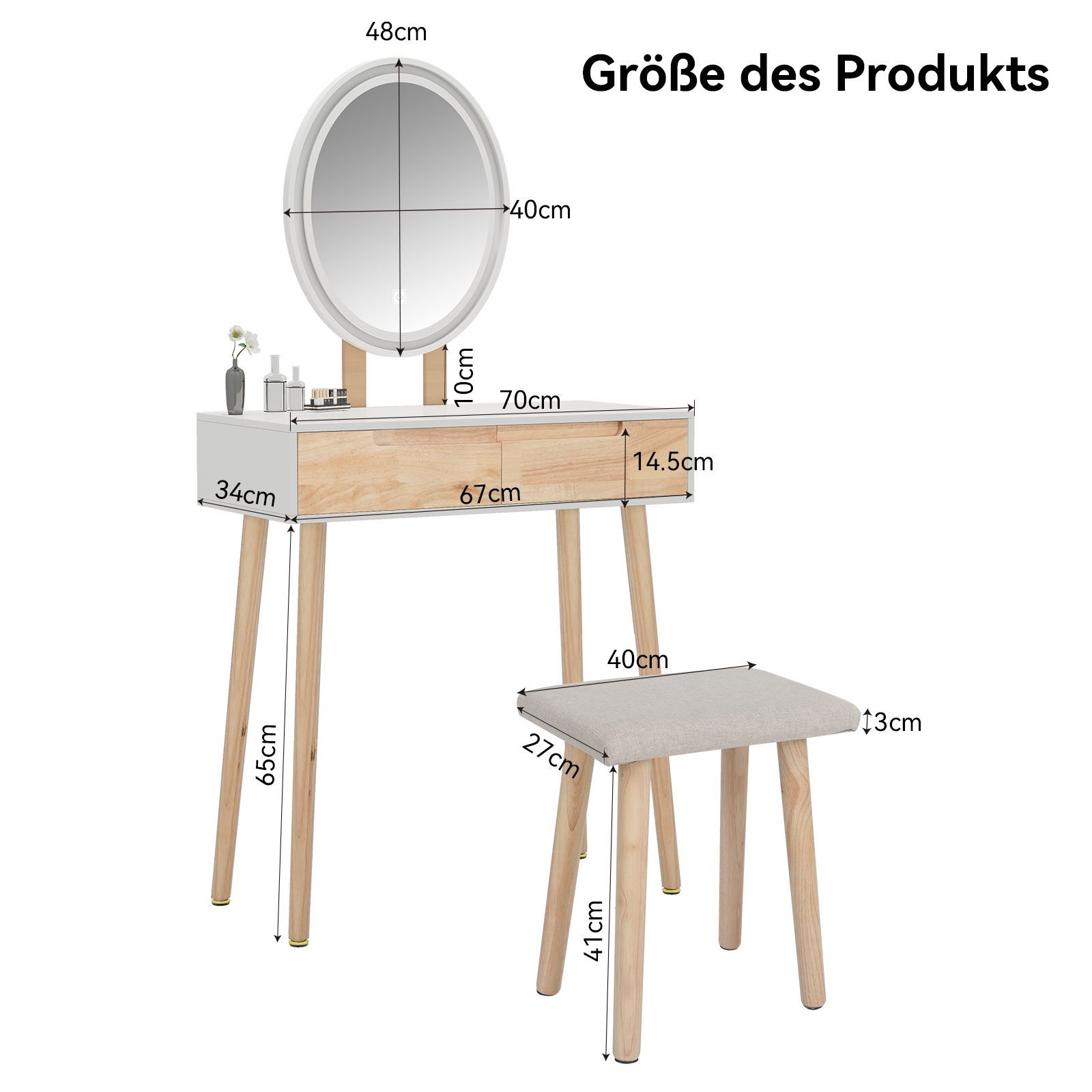 Schminktisch mit LED Beleuchtung Kosmetiktisch Frisiertisch Spiegel Holz Hocker