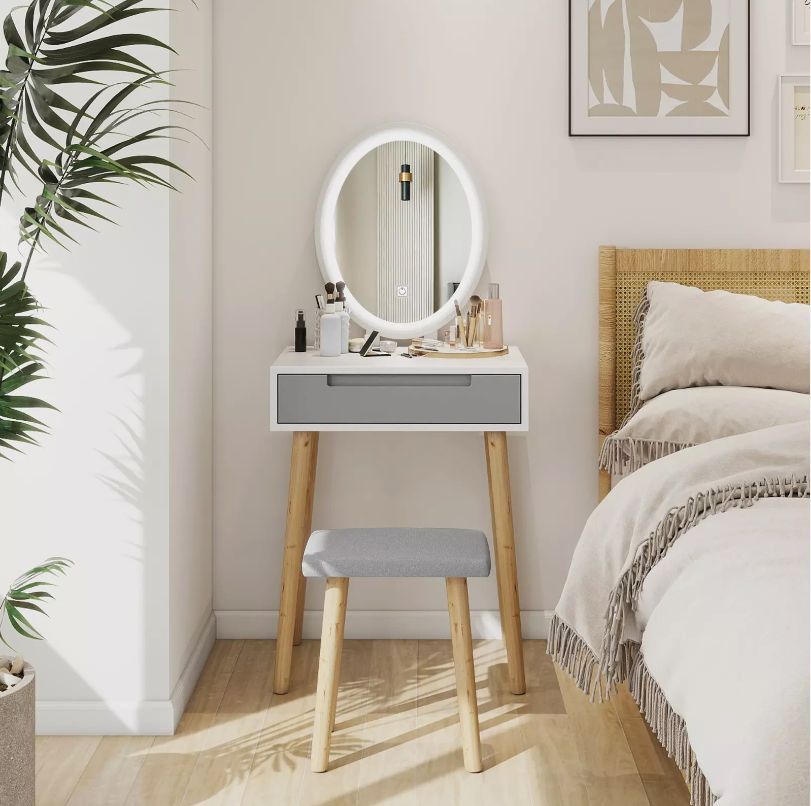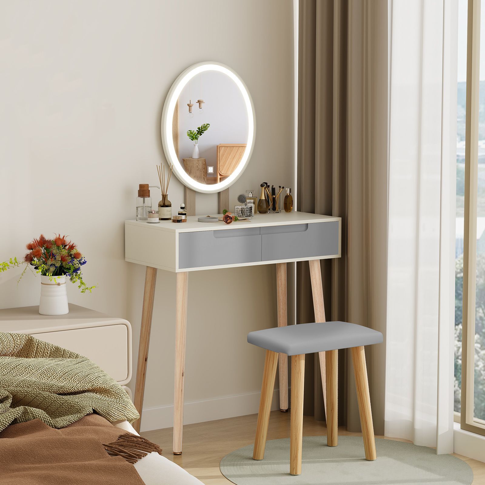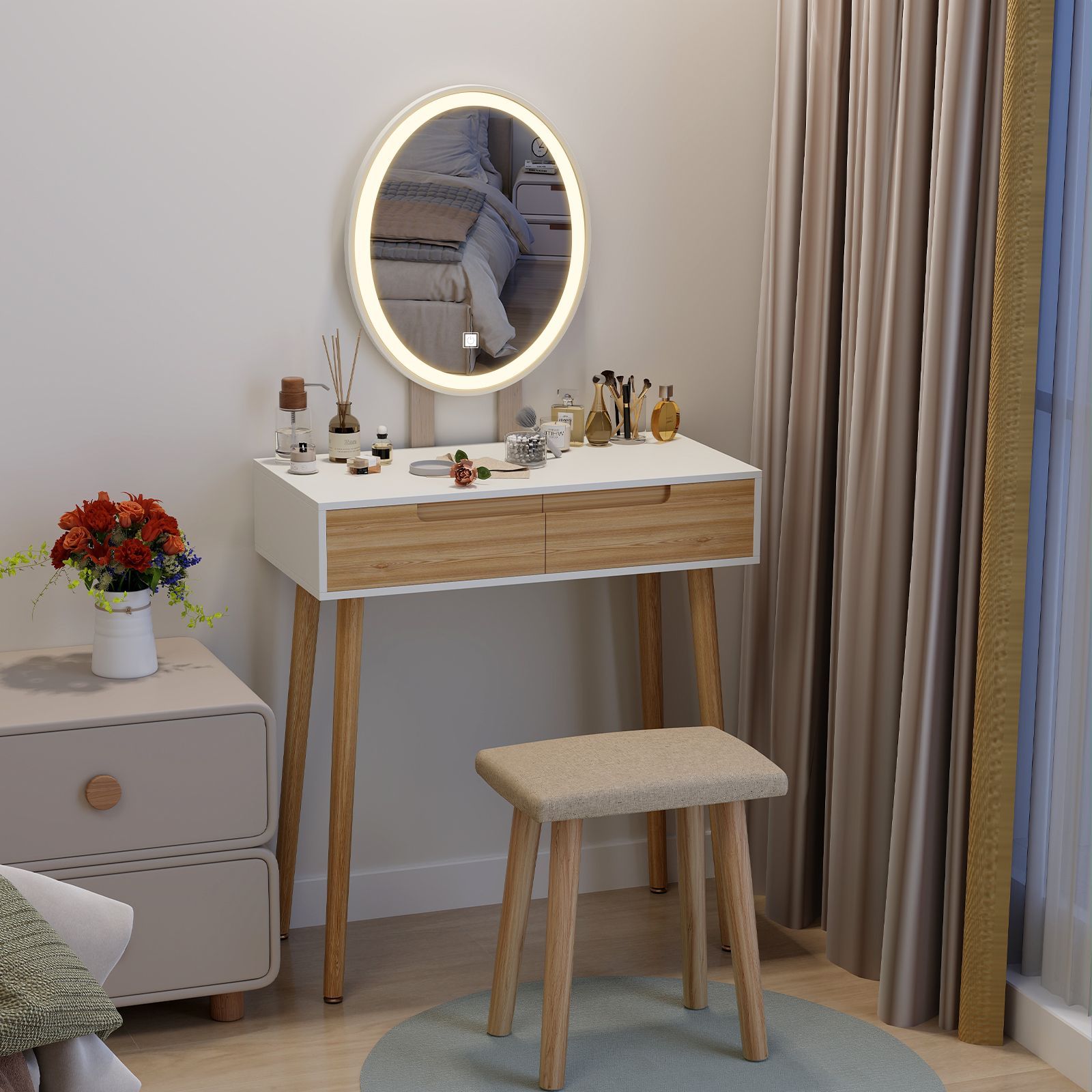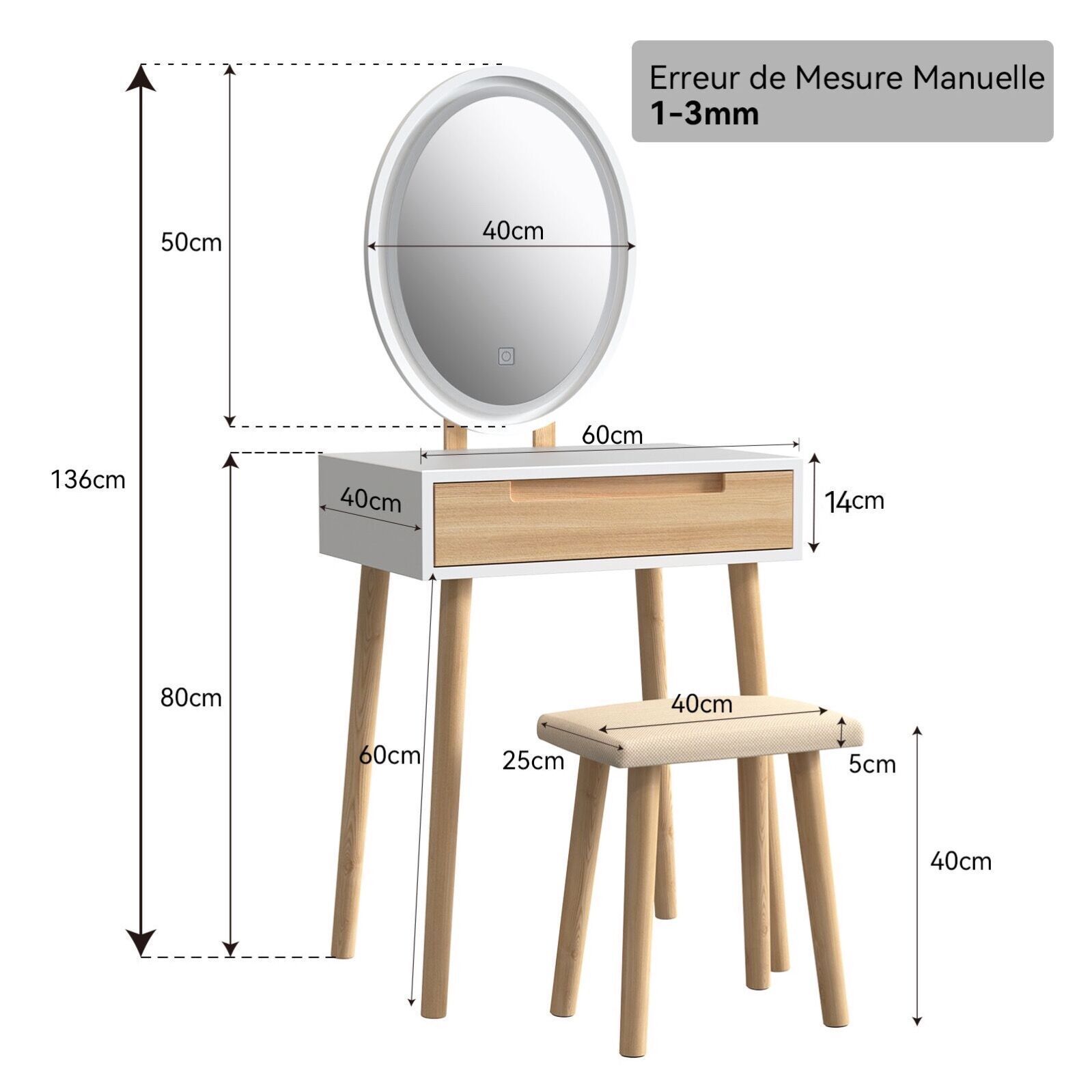 Schminktisch mit LED Beleuchtung Kosmetiktisch Frisiertisch Spiegel Holz Hocker