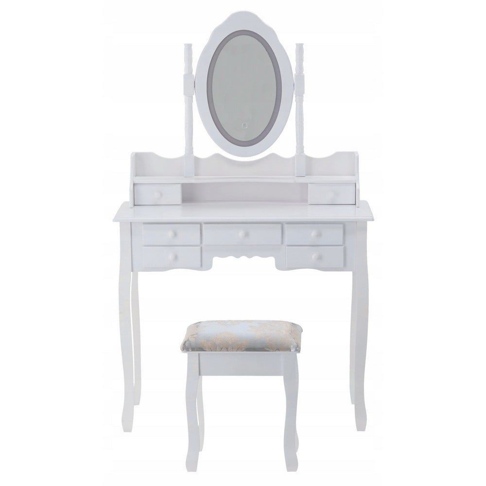 Schminktisch – mit Spiegel, Licht und Hocker – 90 x 40 x 146 cm – weiß