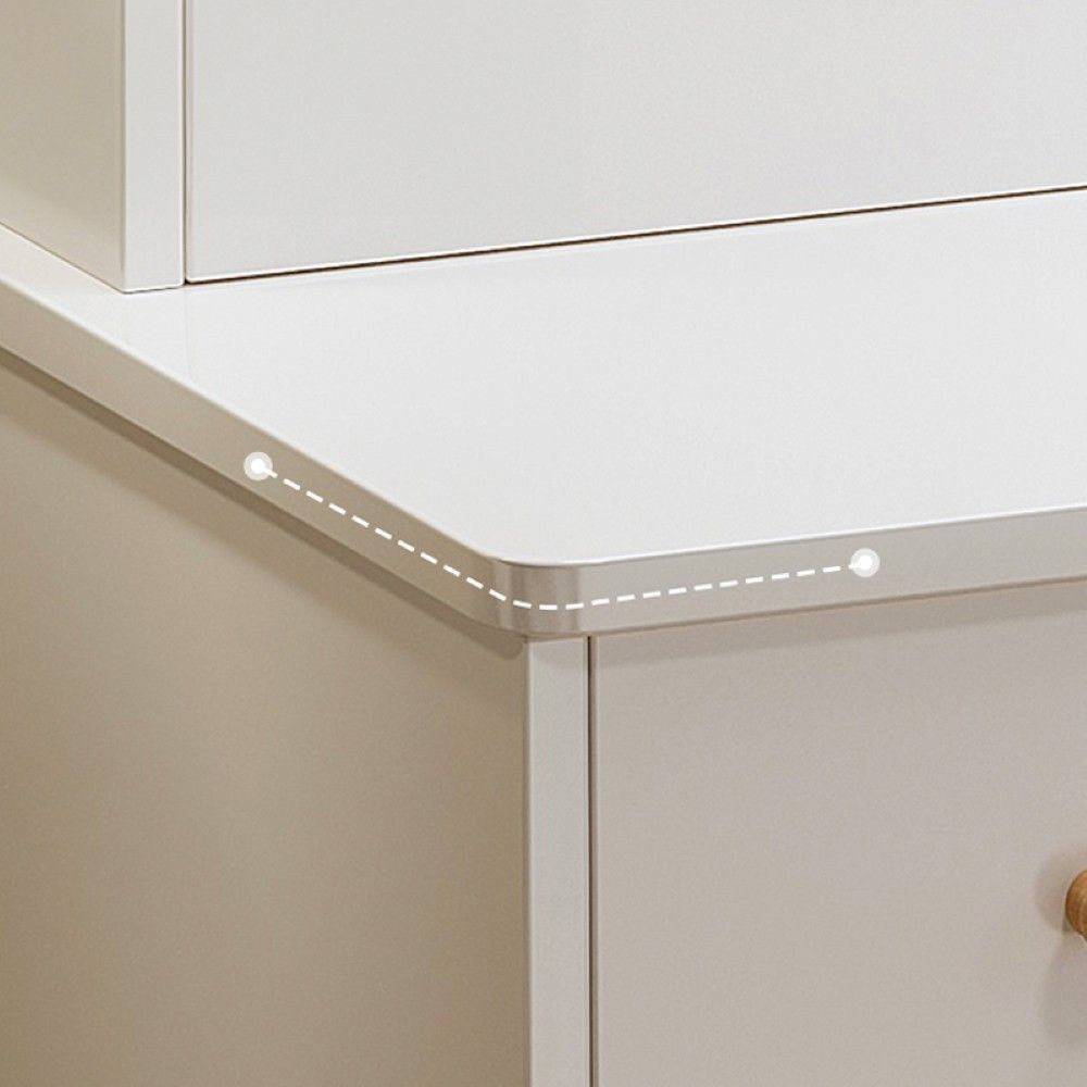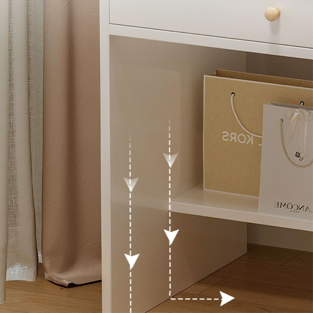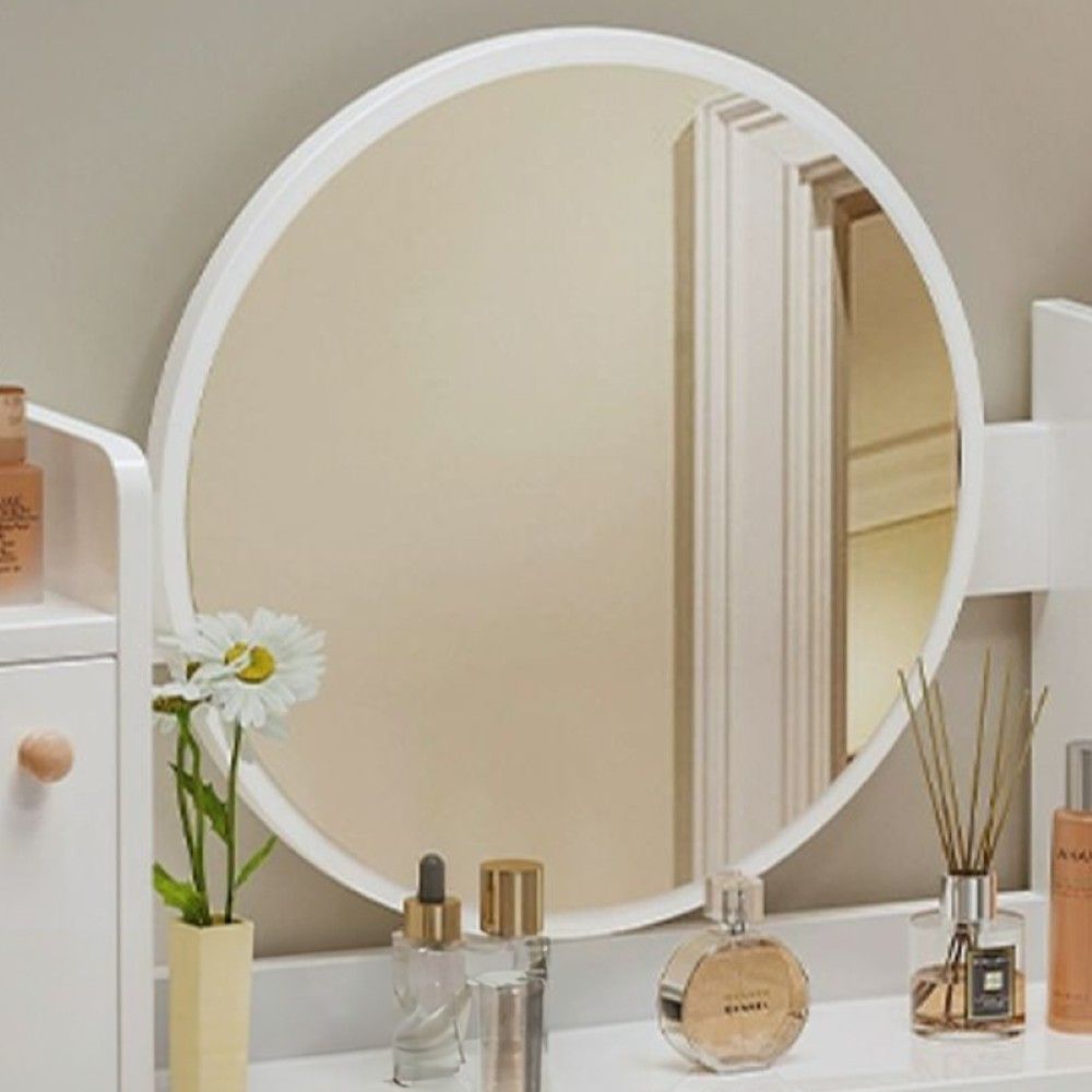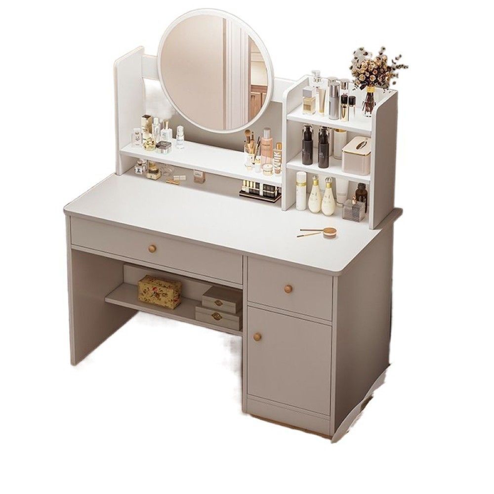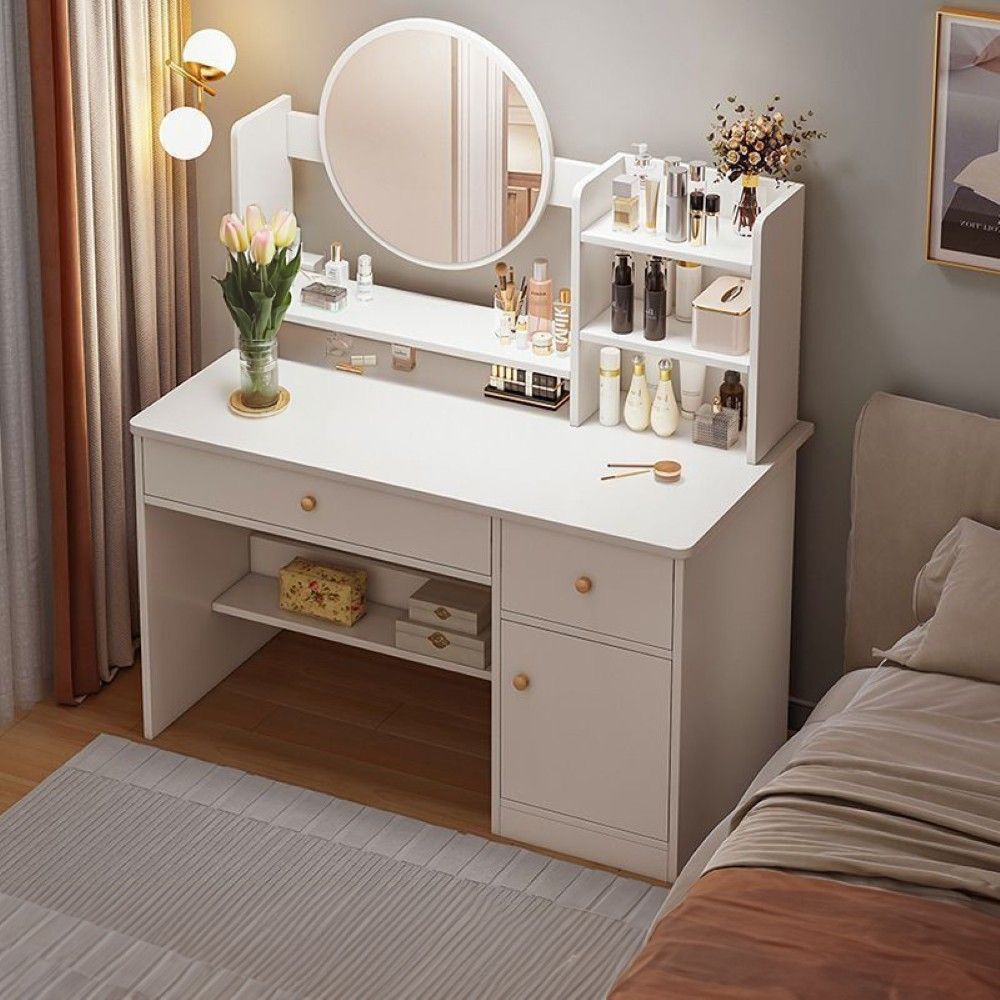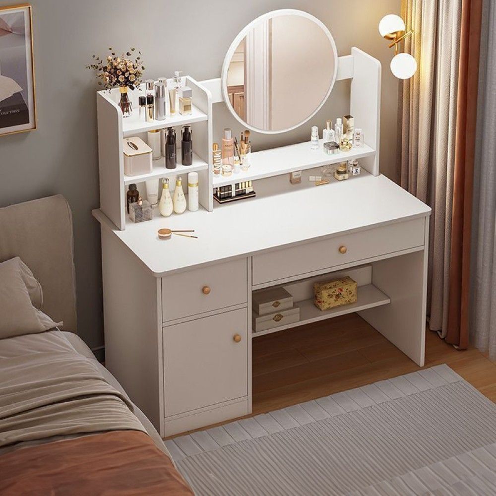 Schminktisch mit Spiegel und Schubladen, weiß, glamouröses Make-up, skandinavisch