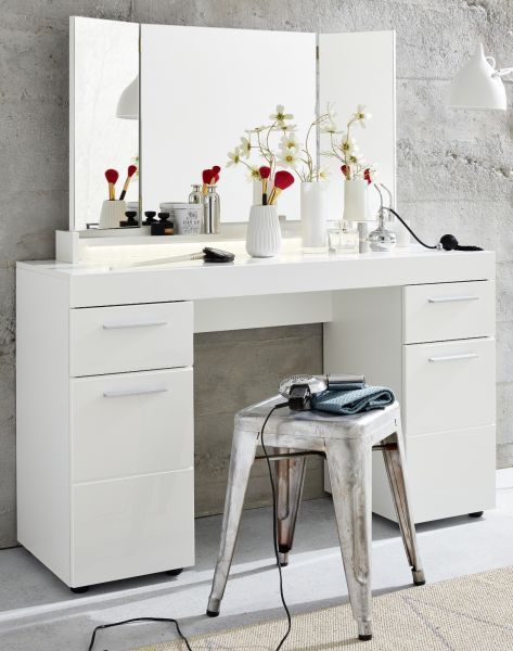 Trendteam Schminktisch weiß Hochglanz mit Schubkasten und Spiegel Schminkkommode Amanda