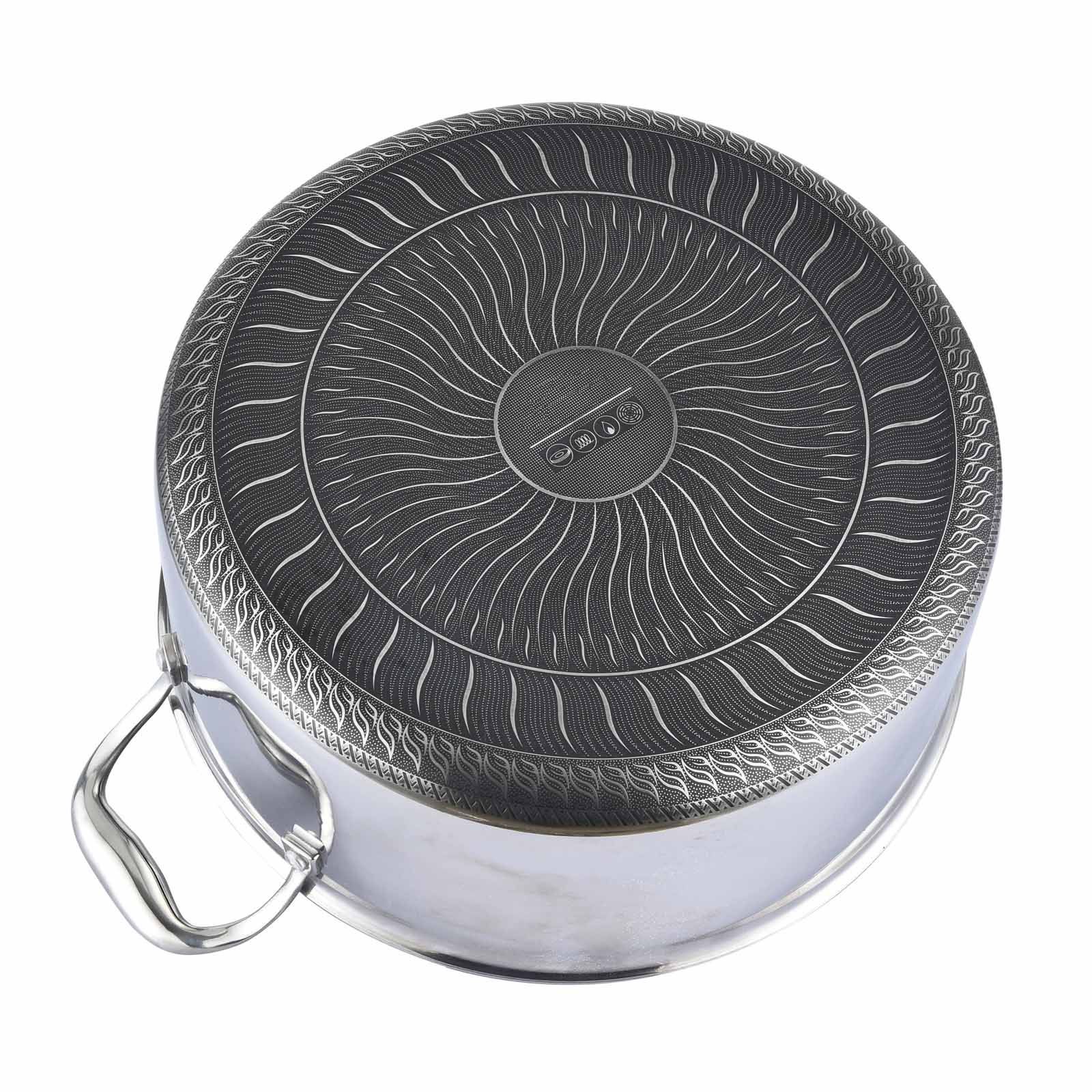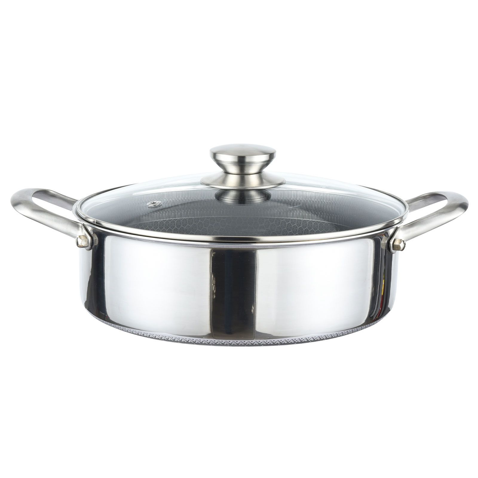 Schmortopf 24 cm aus Edelstahl mit Glasdeckel Antihaft - Wabenstruktur Bräter