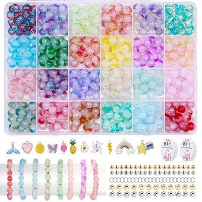 • 500 x Glasperlen 24 Farben 8mm rund mit Abstandsperlen und Schnur