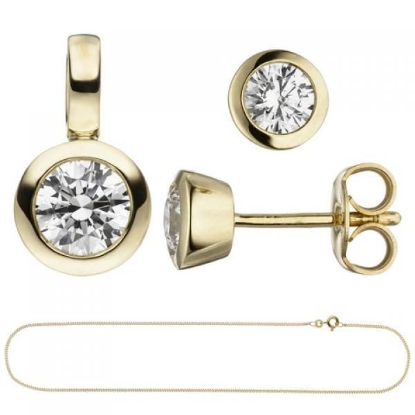 JOBO Schmuck-Set 333 Gold Gelbgold 3 Zirkonia Ohrstecker und Kette 45 cm