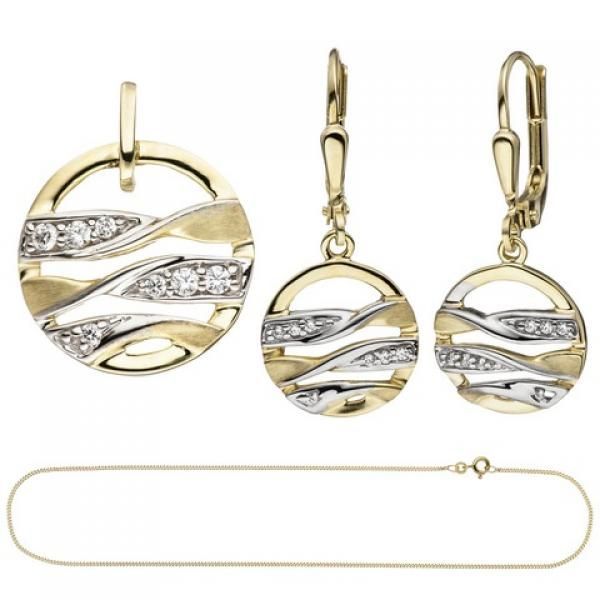 JOBO Schmuck-Set 333 Gold Gelbgold mit Zirkonia Ohrringe und Kette 42 cm