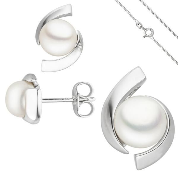 Schmuck-Set 333 Gold Weißgold Süßwasser Perlen mit Kette 42 cm