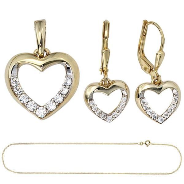 JOBO Schmuck-Set 333 Herz Gold Gelbgold Zirkonia Ohrringe Anhänger und Kette 42 cm