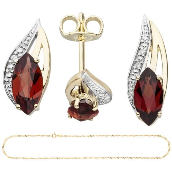 Schmuck-Set 585 Gold Gelbgold Granate und Diamanten mit Kette 45 cm