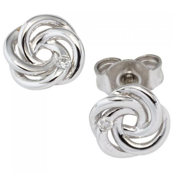 • GLIZZ Schmuck Damen-Ohrringe Gold 333/8K Knoten Ohrstecker Mit Zirkonias GL8675