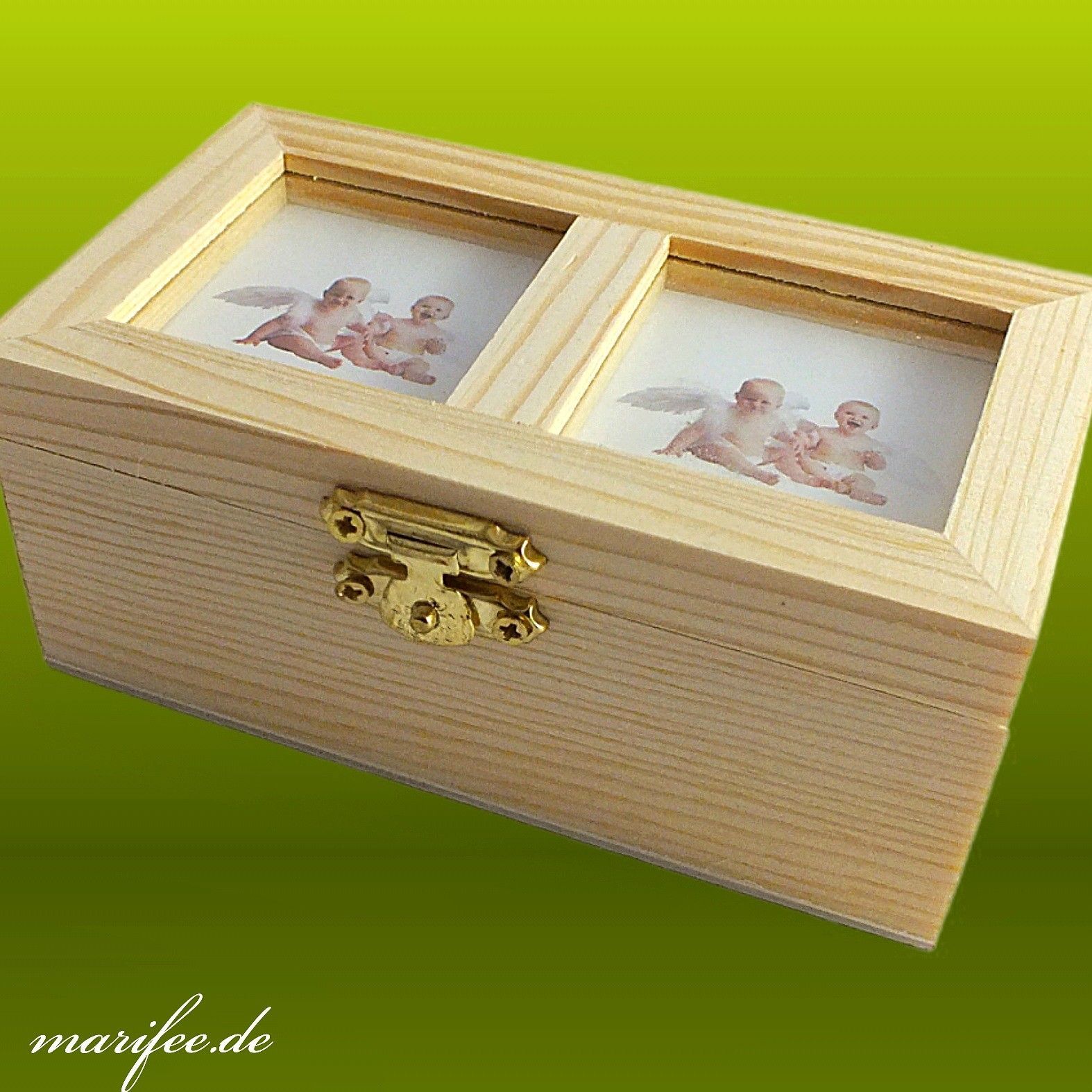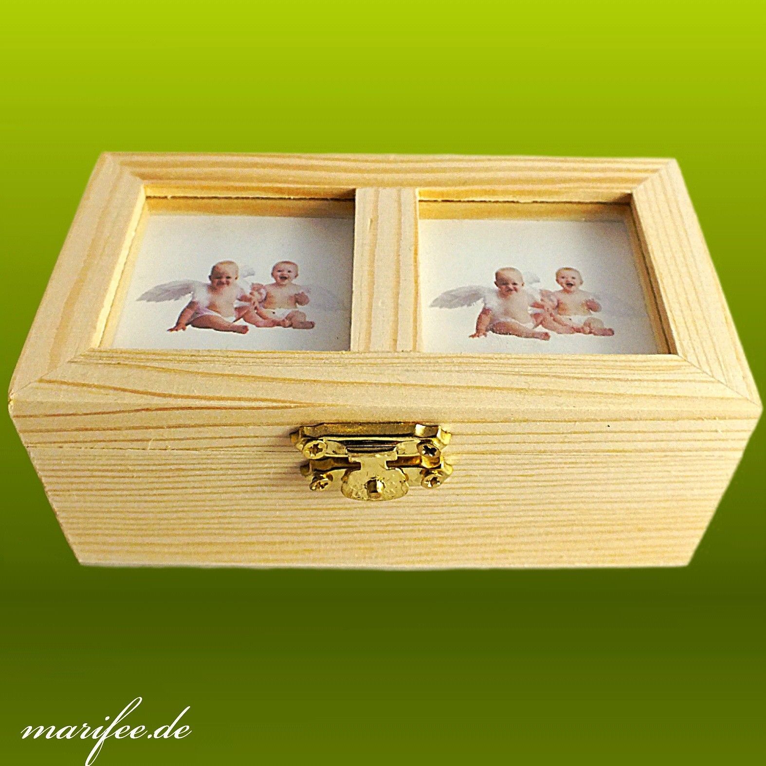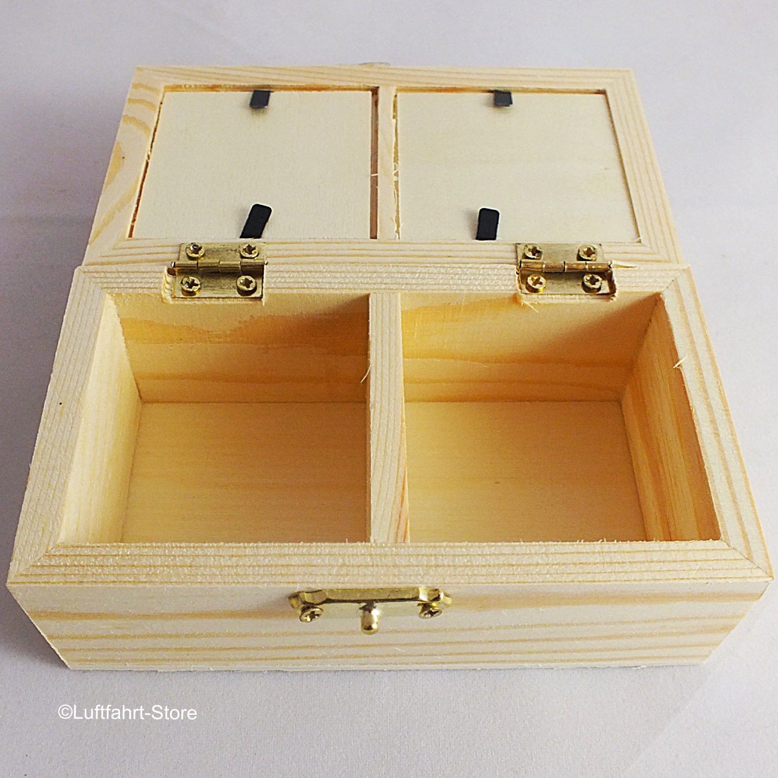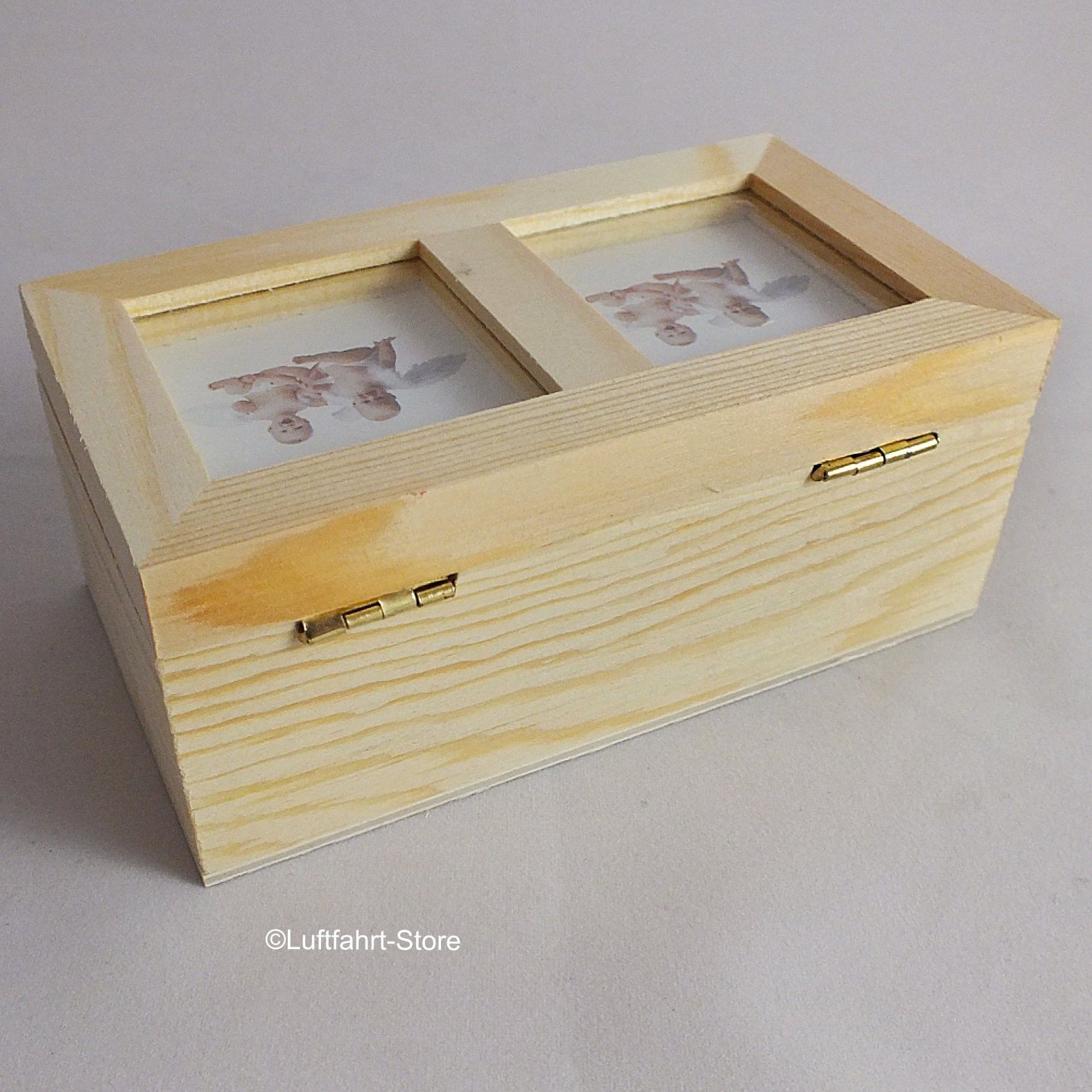 Schmuckschatulle Naturholz mit Bilderrahmen-Deckel für 2 Fotos Art.-Nr. 12022