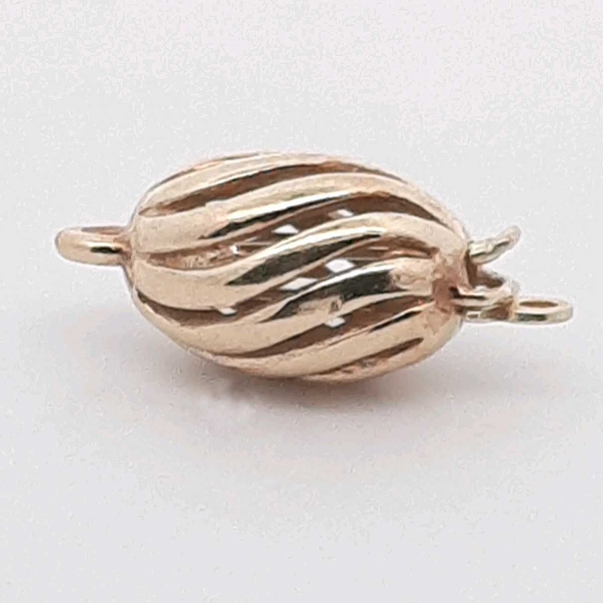 Schmuckschließe 9932 Schmuckverschluss Oval Silber vergoldet Material: Silber vergoldet Ausführung: 1-reihig Form: Oval, Modell 9932 Marke: Augusta Länge: ca. 11 mm Höhe: ca. 7,2 mm Durchmesser: ca. 10 mm