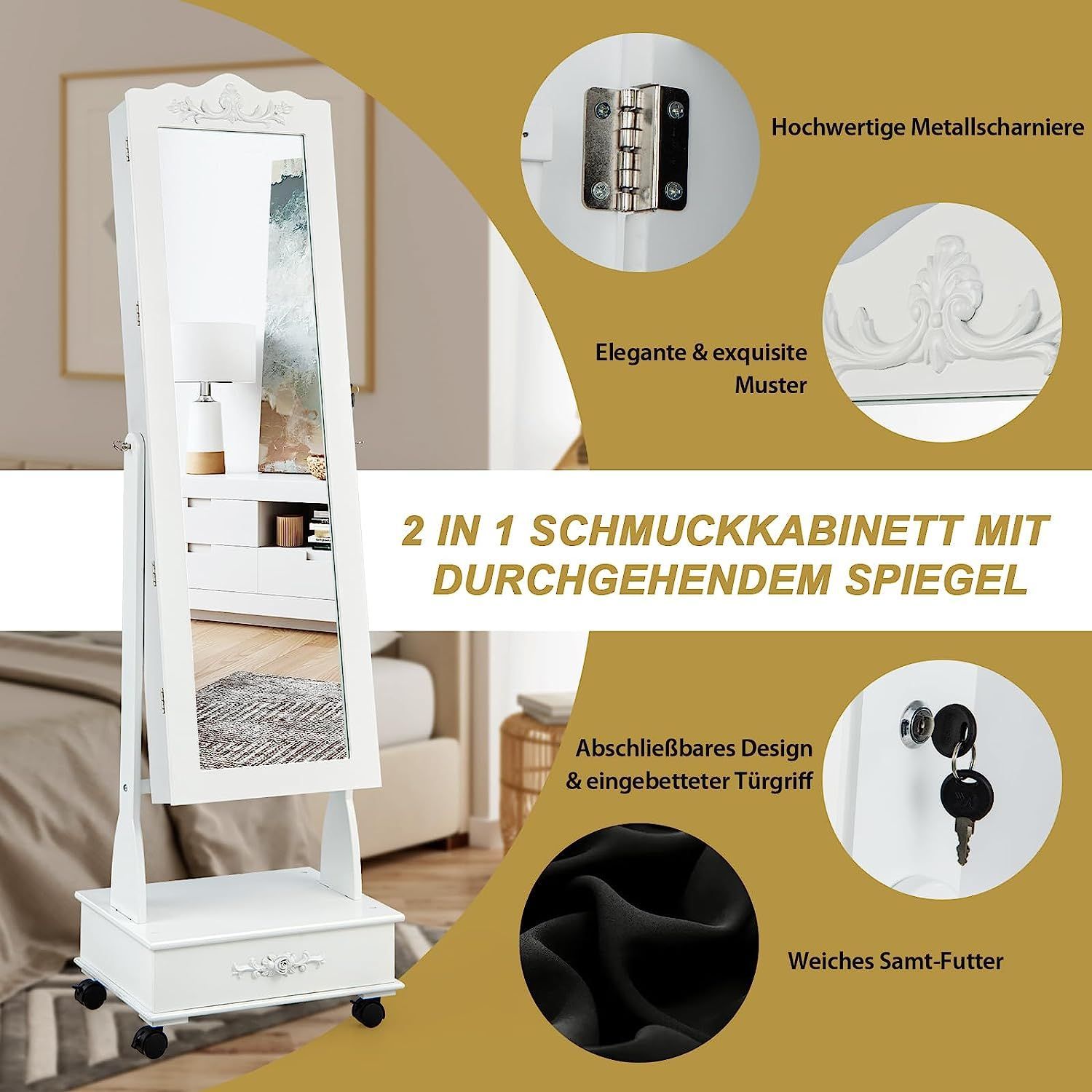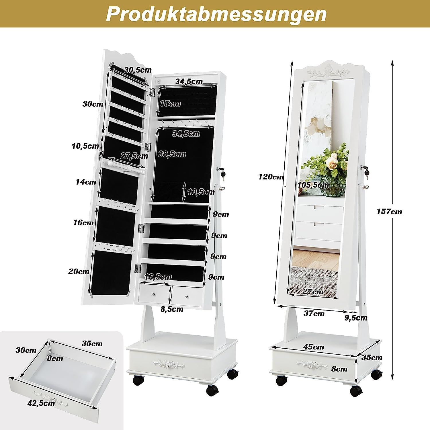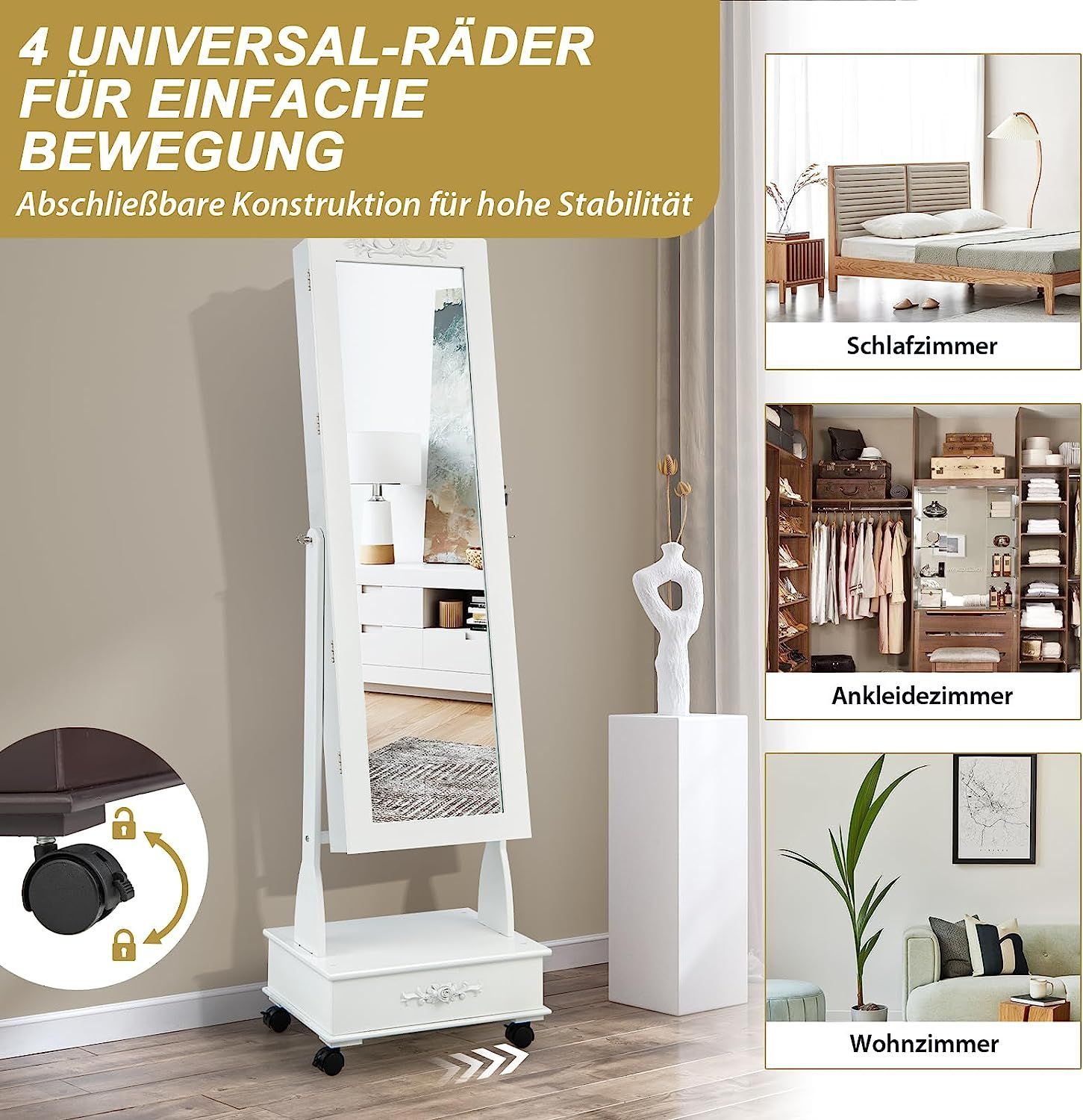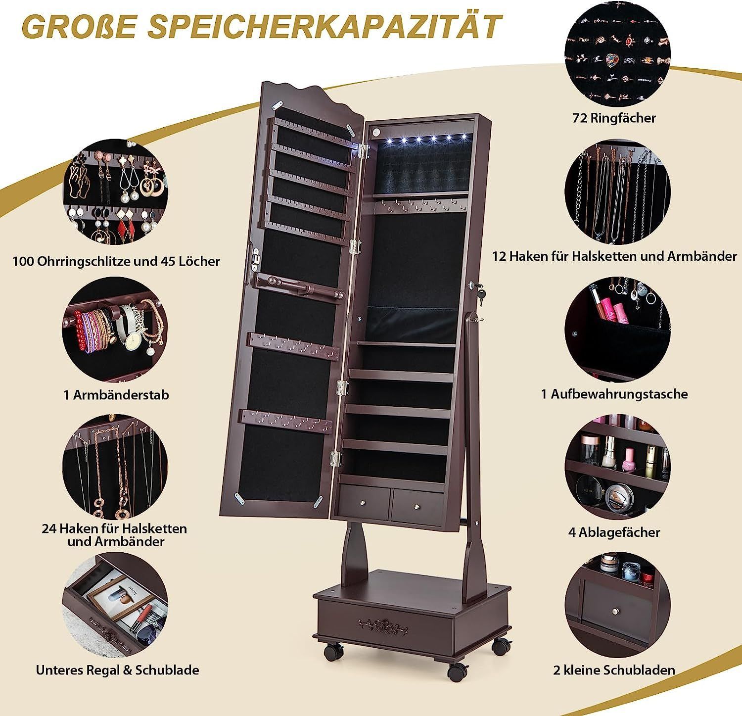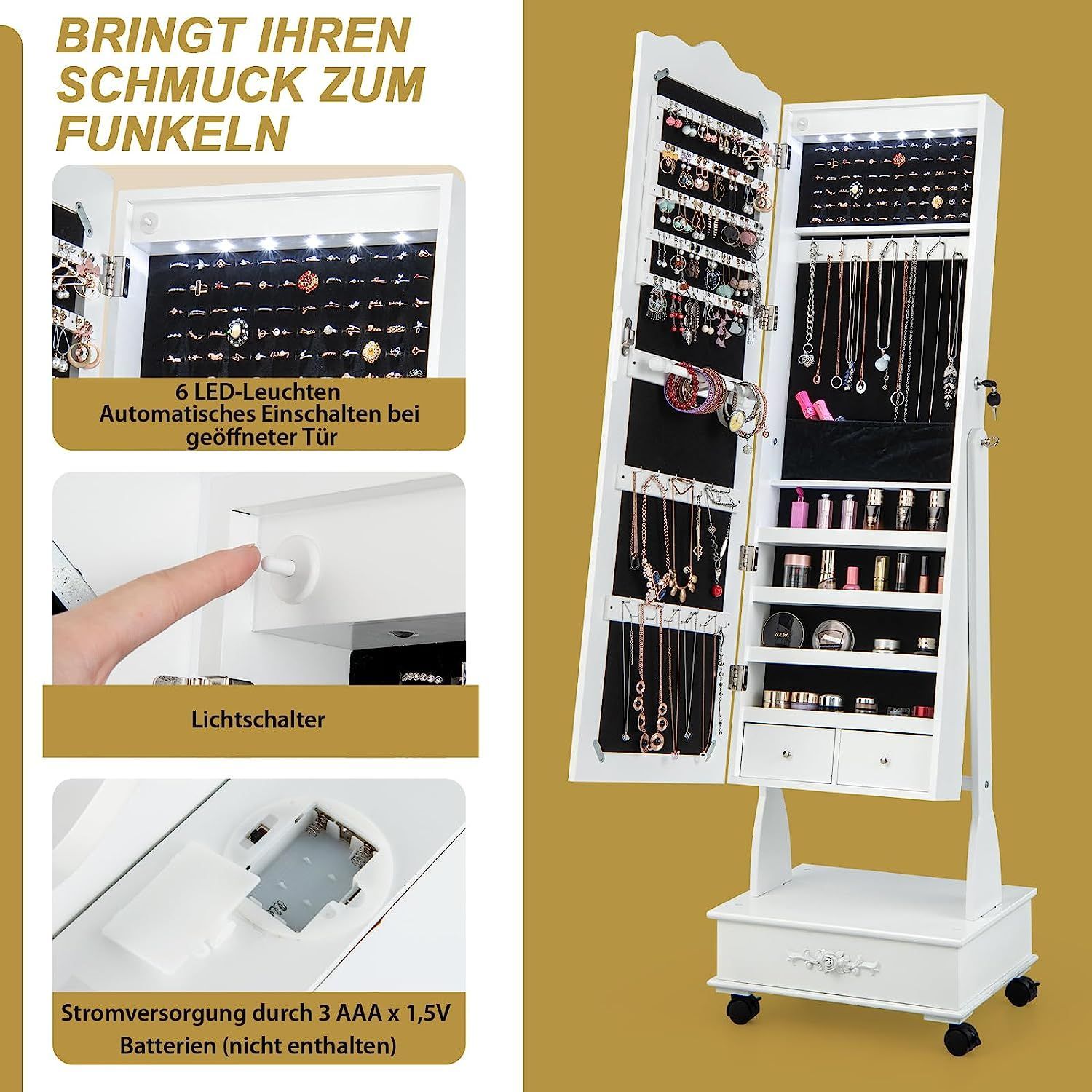 Schmuckschrank mit LED Beleuchtung, Spiegelschrank mit Ganzkörperspiegel & Schubladen