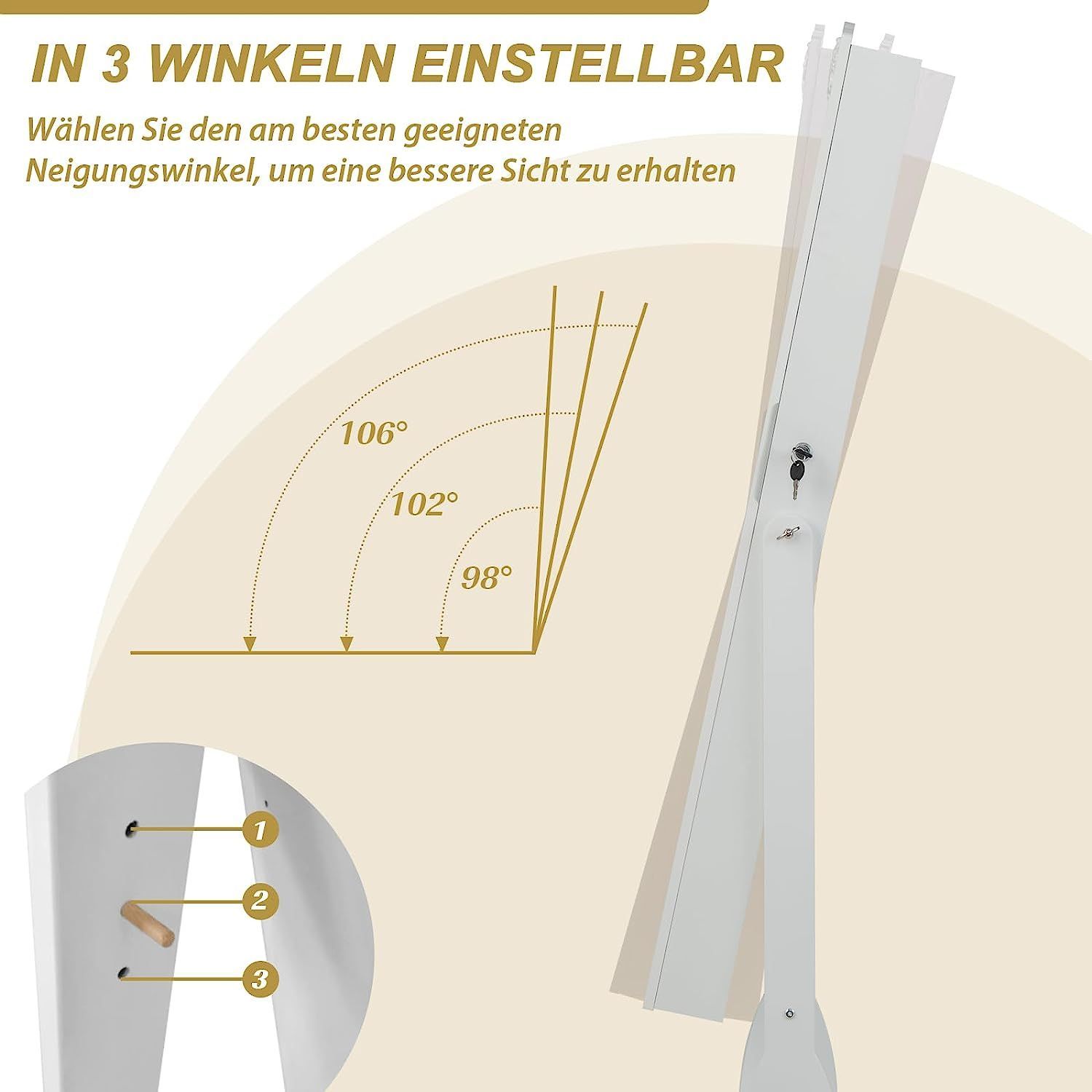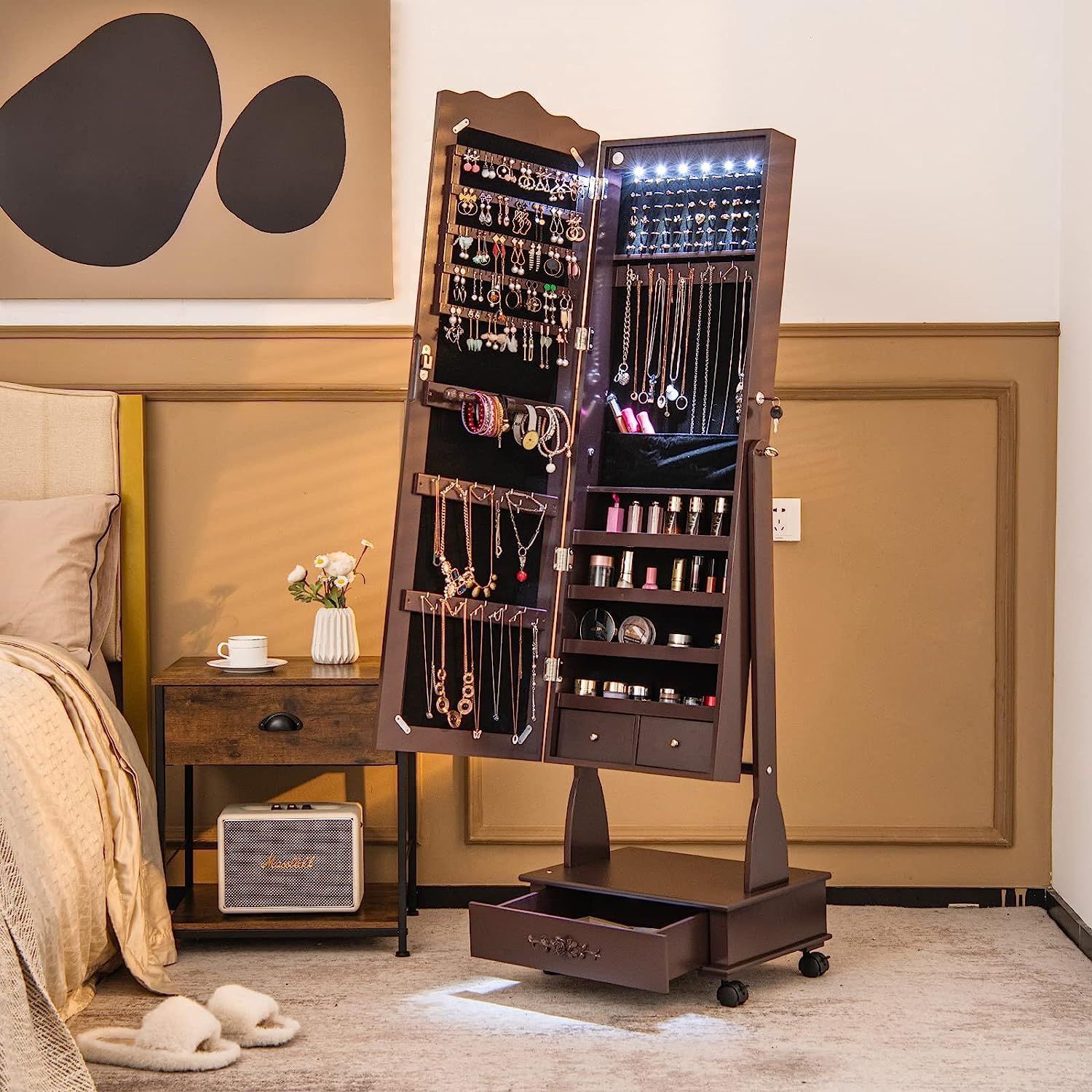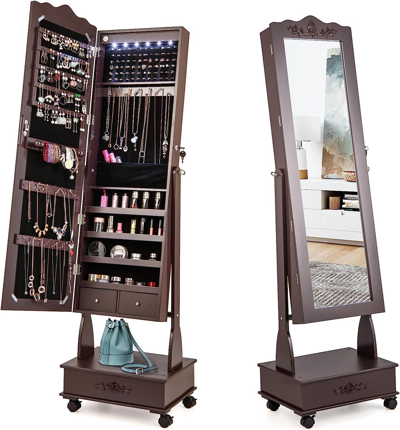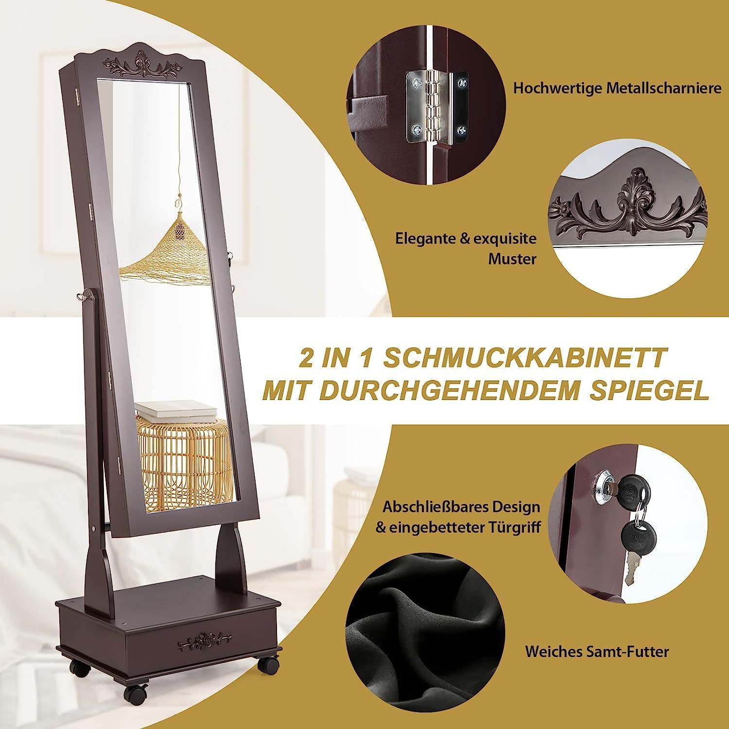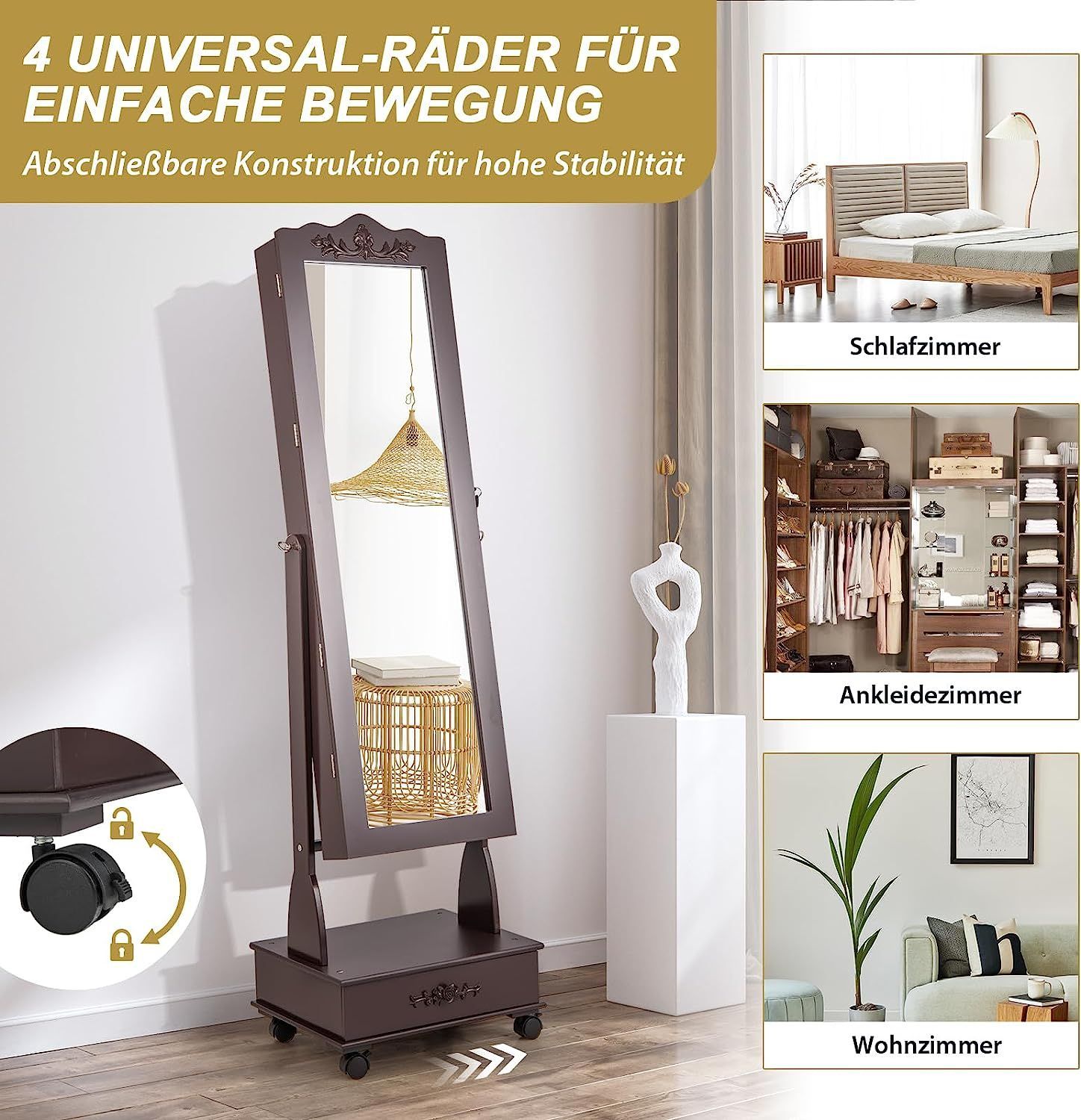 Schmuckschrank mit LED Beleuchtung, Spiegelschrank mit Ganzkörperspiegel & Schubladen