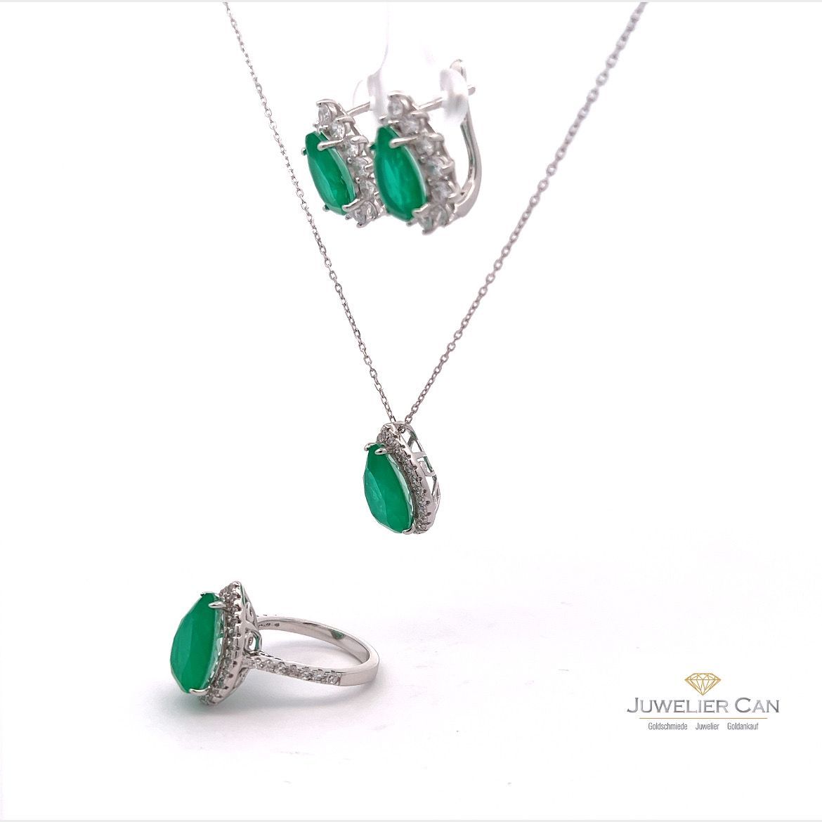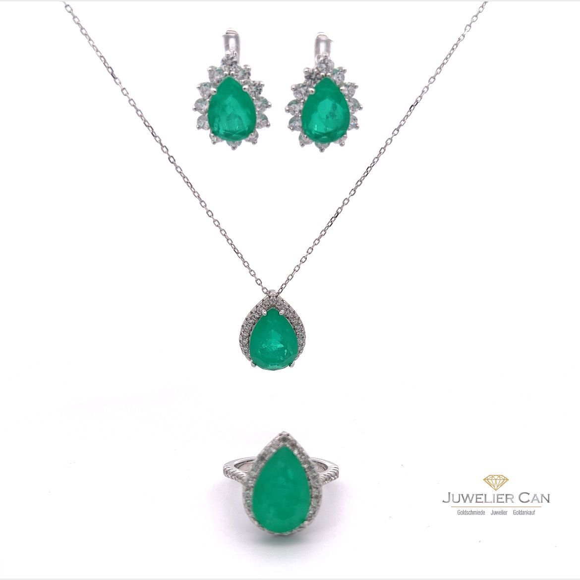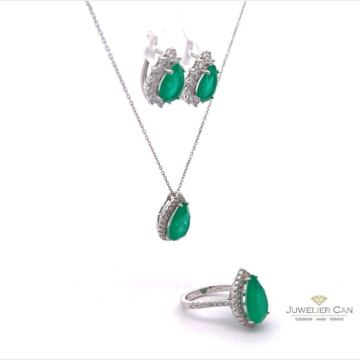 Schmuckset aus 925er Silber mit Synt. Smaragd und Zirkonia