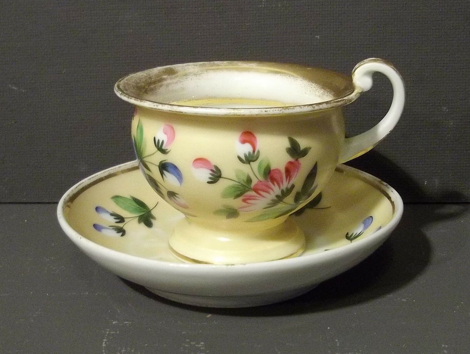Schmuck-Tasse um 1830 (Biedermeier) . Ohne Marke (siehe Foto). Handbemaltes Porzellan. Sehr feine Arbeit! Leider ist die Goldfarbe teilweise abgenutzt. Maße: Tasse H 7 cm. Antikes am Deich - Inh: Oliver Kipp-Trense G M T Sprache erkennen Afrikaans Albanisch Arabisch Armenisch Aserbaidschanisch Baski