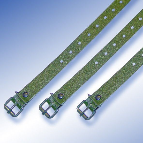 Schnallriemen 15 x 200 mm olivegrün mit geschweißter Rollschnalle PVC TIR Strap with welded loop Artikel-Nr.: 1000.66.00150200 Material: PVC Kunststoff Farbe: olivegrün Größe: 15 x 200 mm Breite: 15 mm Länge: 200 mm Stärke: 2,1 mm Lochabstand: 20 mm Gewicht: 20 g Schnallriemen 20 x 200 mm olivegrün