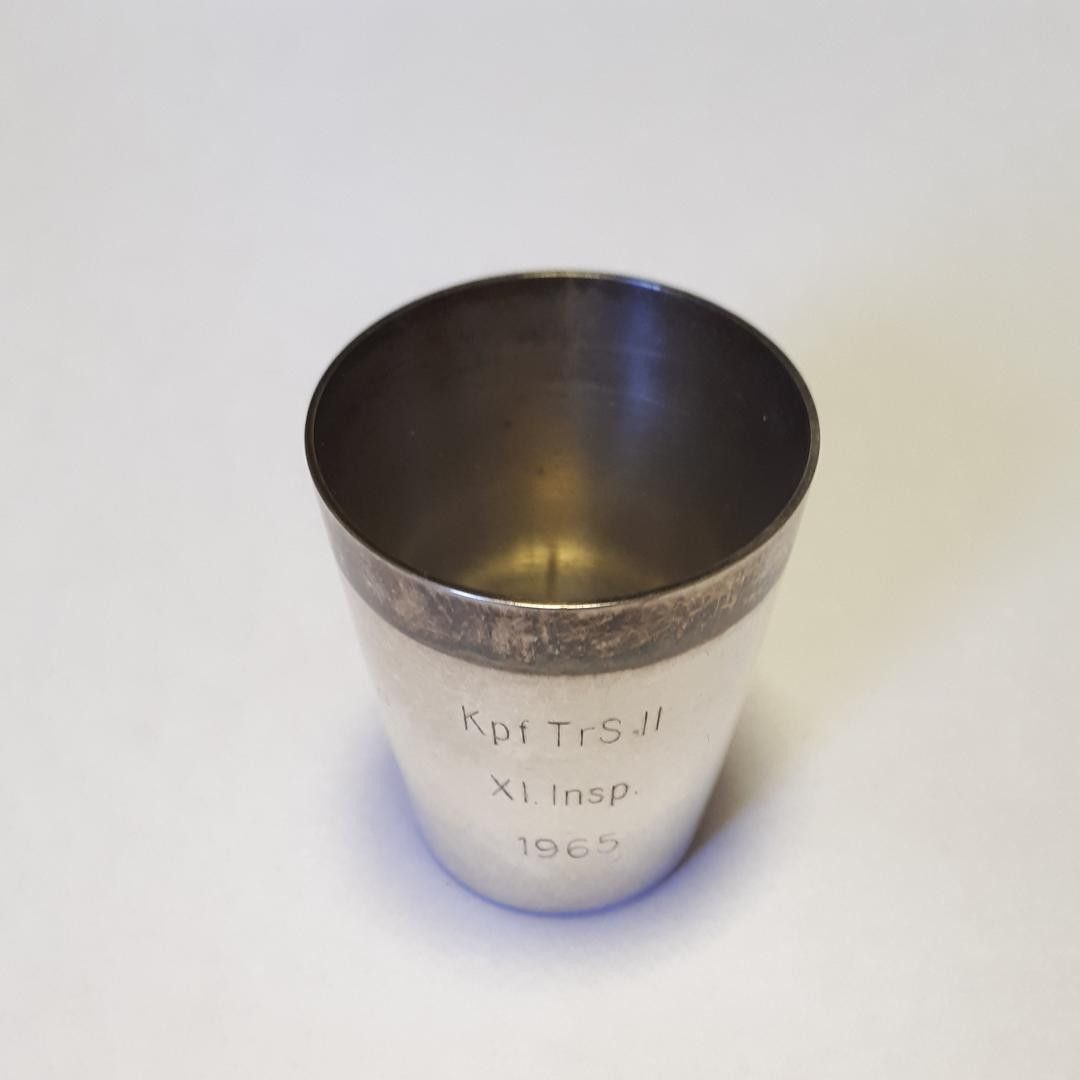 Schnapsbecher WMF mit Gravur Kpf Tr S II XI. Insp. 1965 Kampftruppenschule II