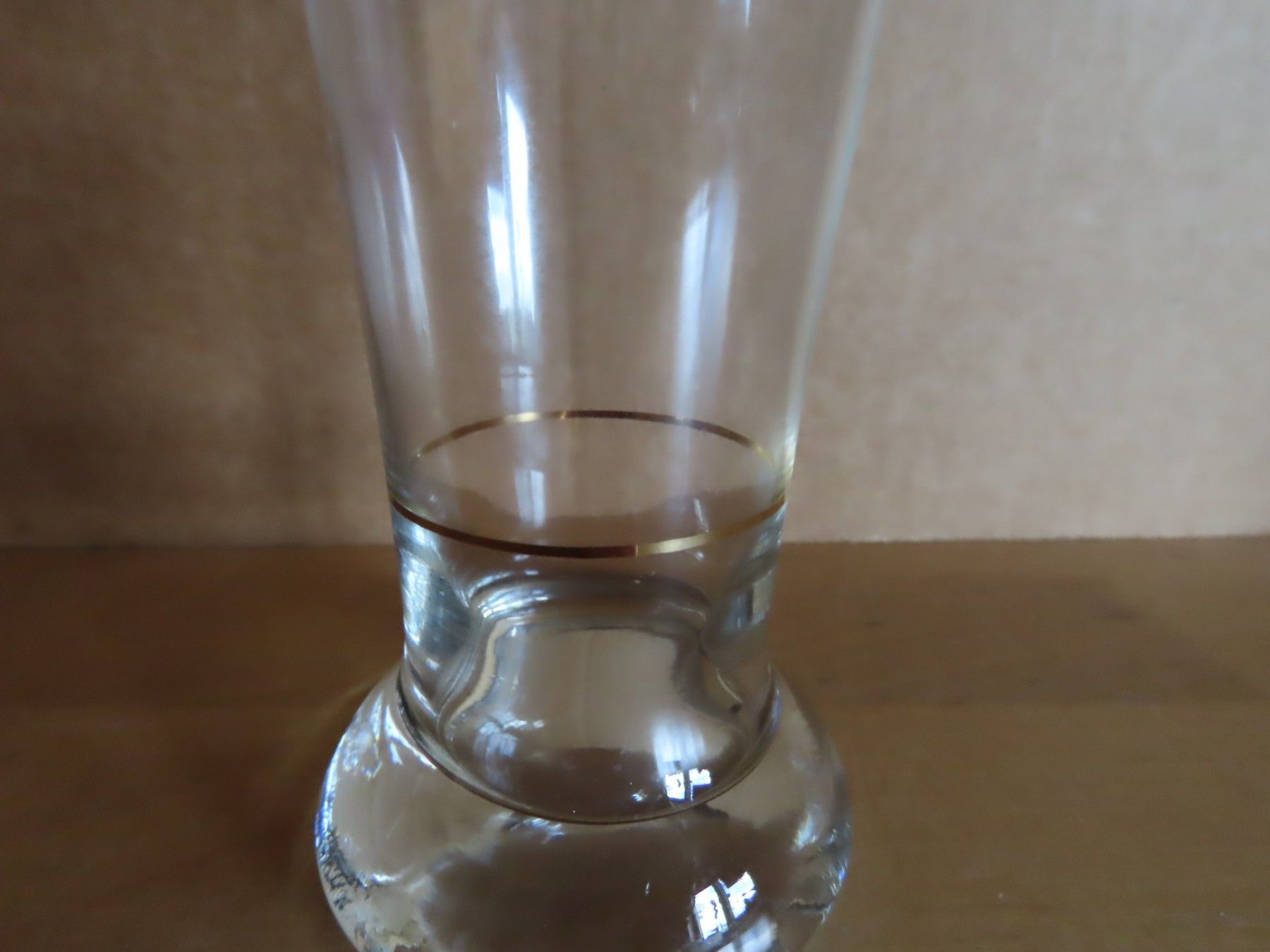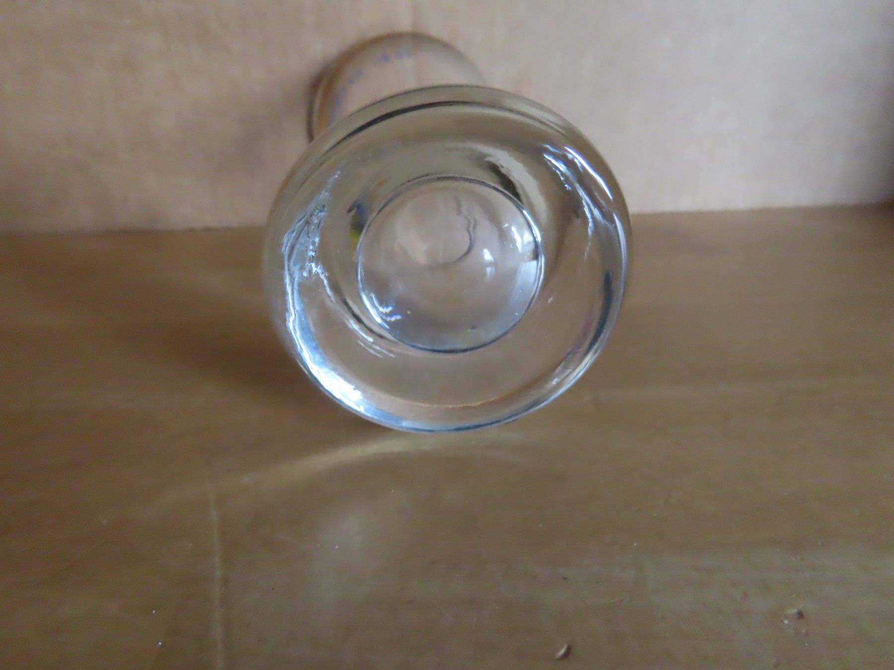 Maße: ca. 14,5 cm hoch x 6,5 cm Durchschitt der Öffnung ; der Fuß ist ca. 5,2 cm hoch, immer die breiteste Stelle gemessen Glasdicke ca. 1 mm Material: Glas Schrift Druck... Mehr