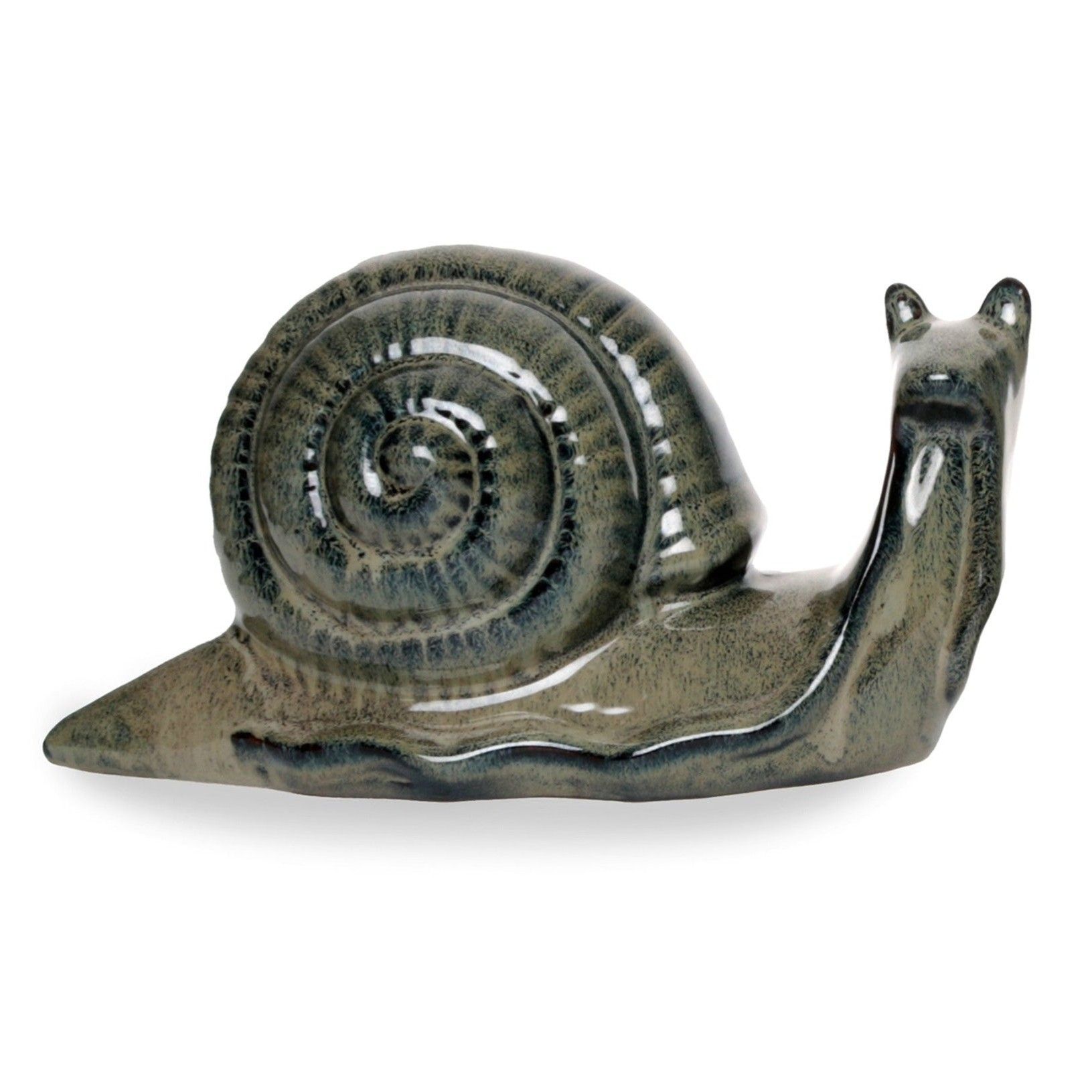 Dragimex Schnecke grau/grün Steingut glasiert Figur Skulptur Garten 30x14cm H17cm