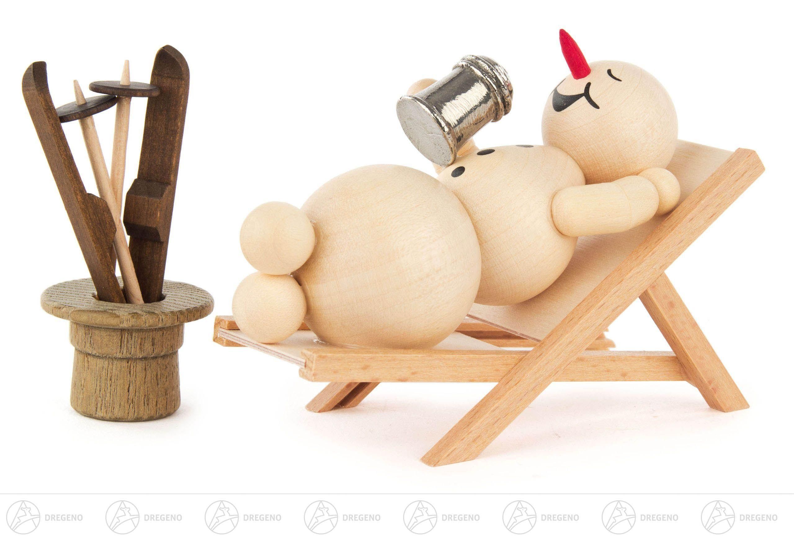 Schneemann Im Liegestuhl BxHxT = 9x6,5x4,5cm NEU Erzgebirge Miniatur Holzfigur