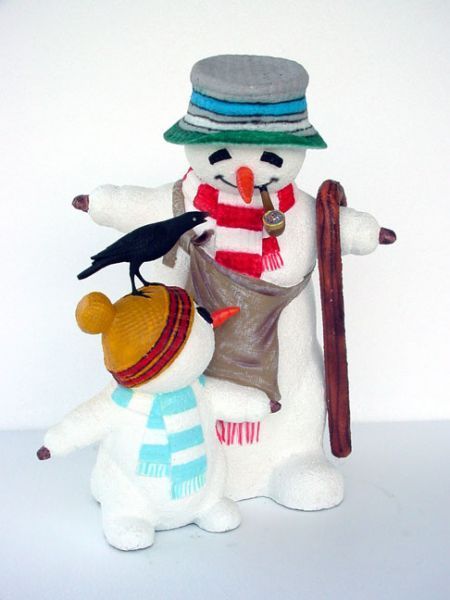 Schneemann mit Kind lebensgroß 71cm für draußen aus Polyresin