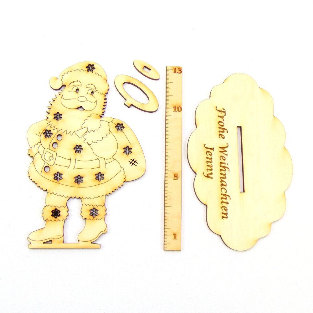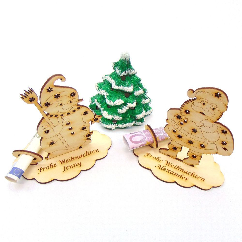 Schneemann oder Weihnachtsmann Geldgeschenk zu Weihnachten mit Namen Holz 13 cm