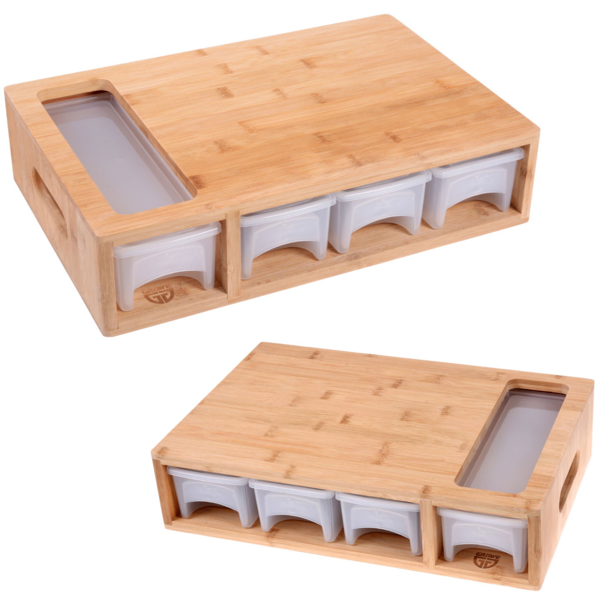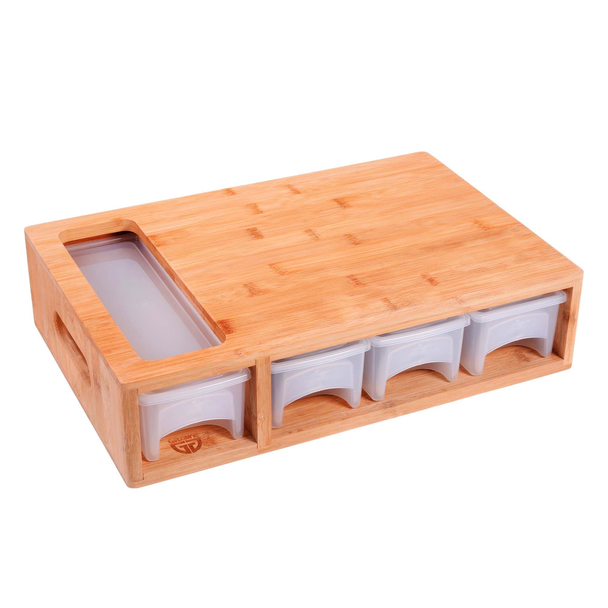 GRÄWE Schneidbrett Bambus mit Auffangschalen, ohne Saftrille