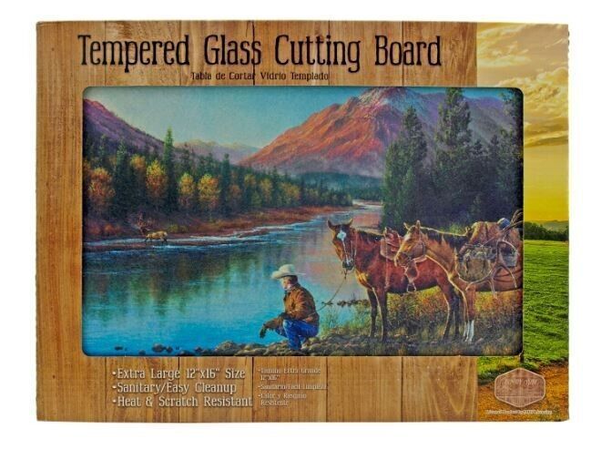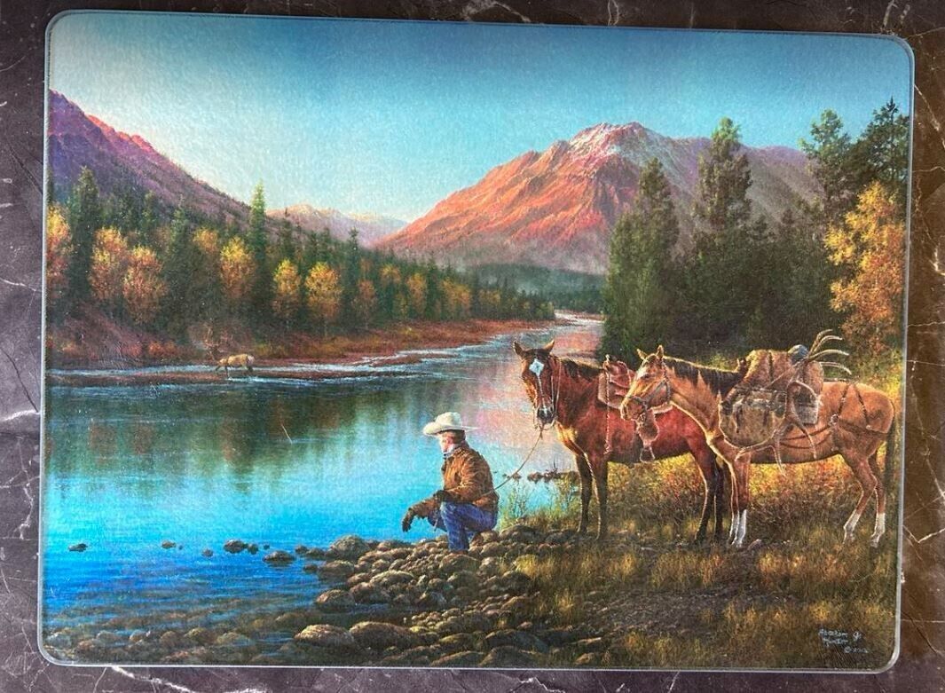Schneidebrett aus Glas Western Scene - Cowboy Pferde 40x30 cm Tempered Glas