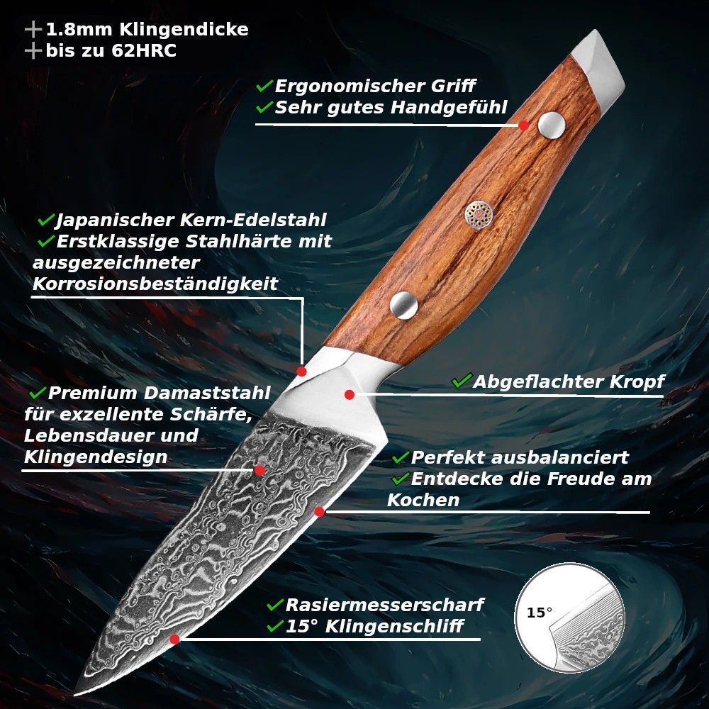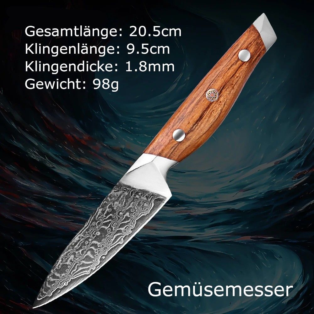 Schneidemesser Gemüsemesser | Damastmesser | Küchenmesser | Früchtemesser |Olivenholz