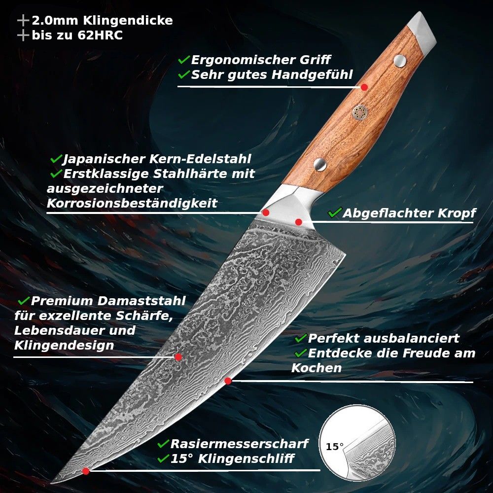 Schneidemesser | Kochmesser | Chefmesser | Damastmesser | Küchenmesser | Olivenholz