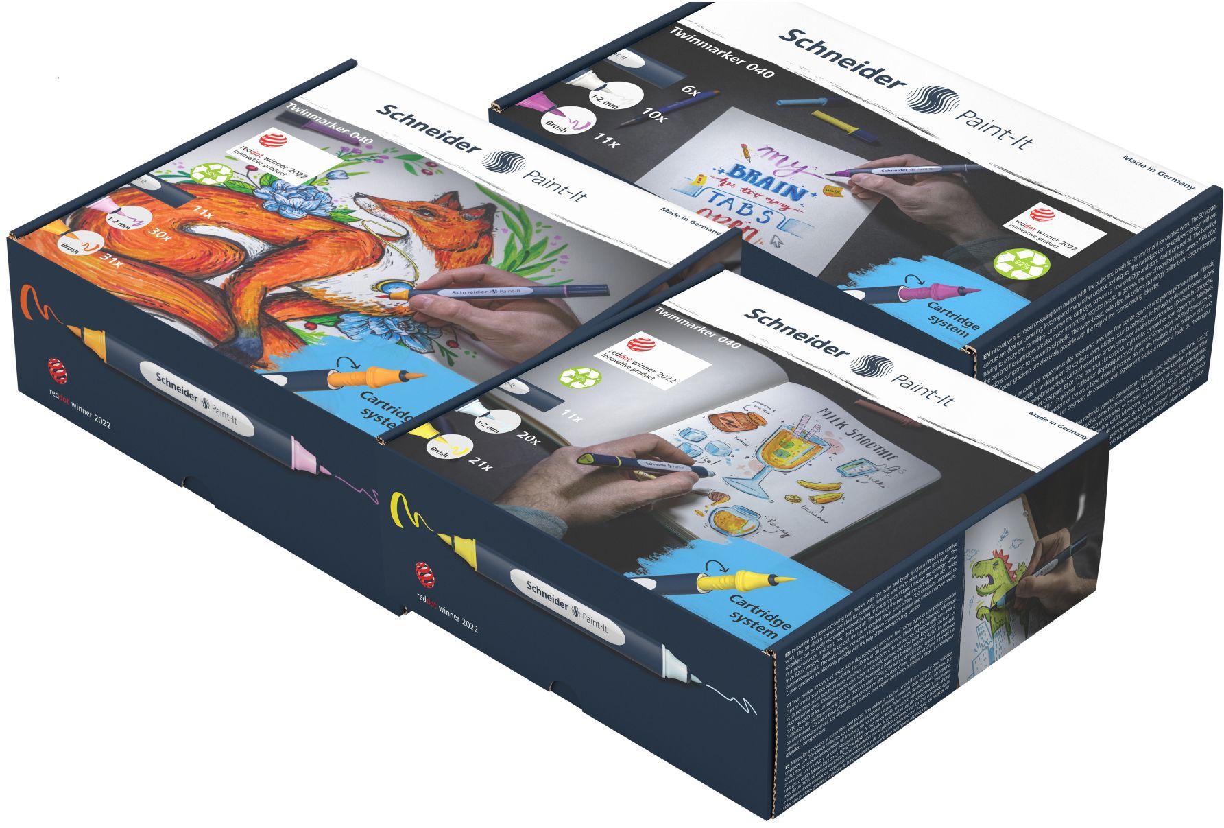 Schneider 040 Paint-It Twinmarker brush+round, verschiedene Sets