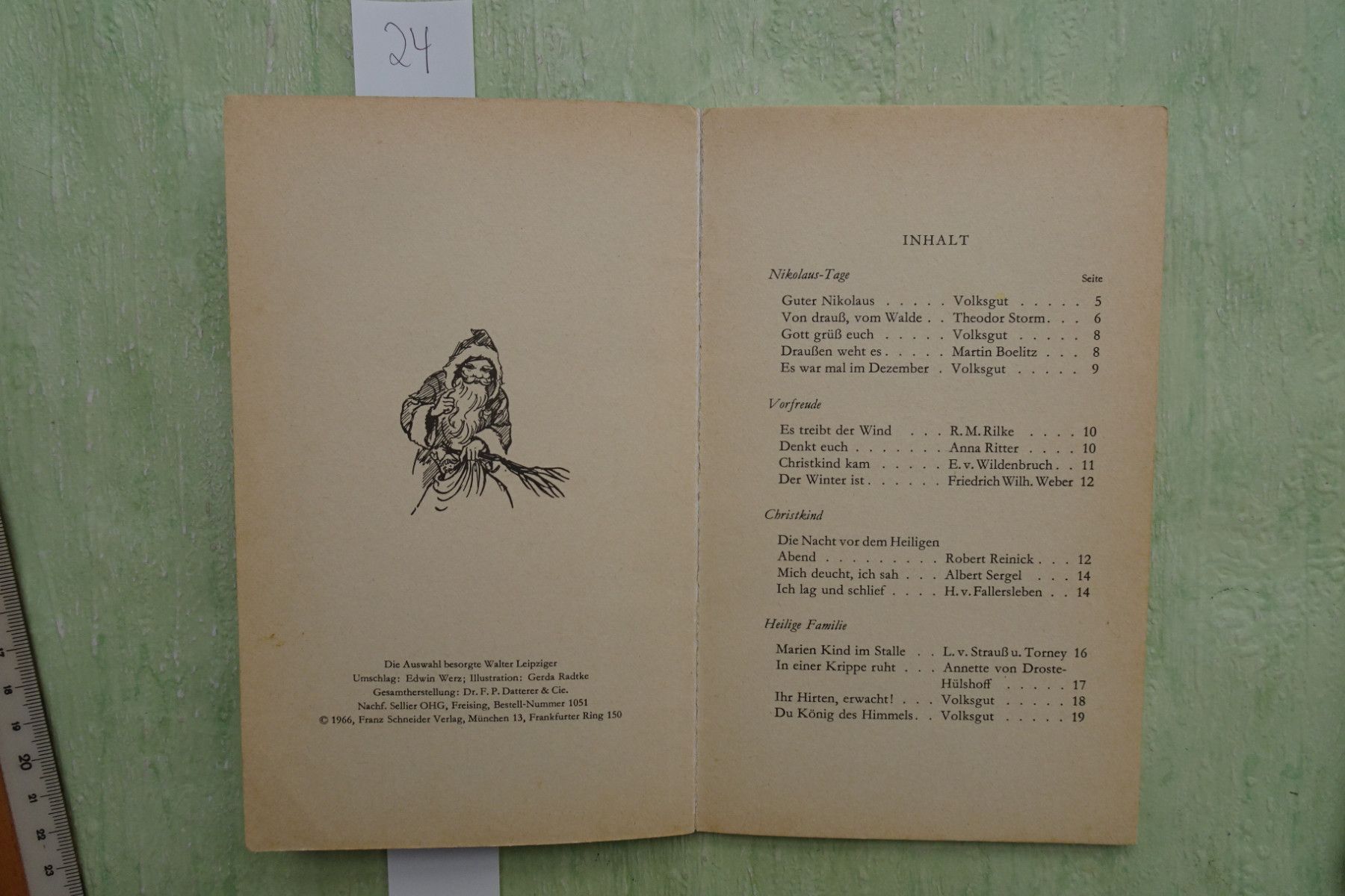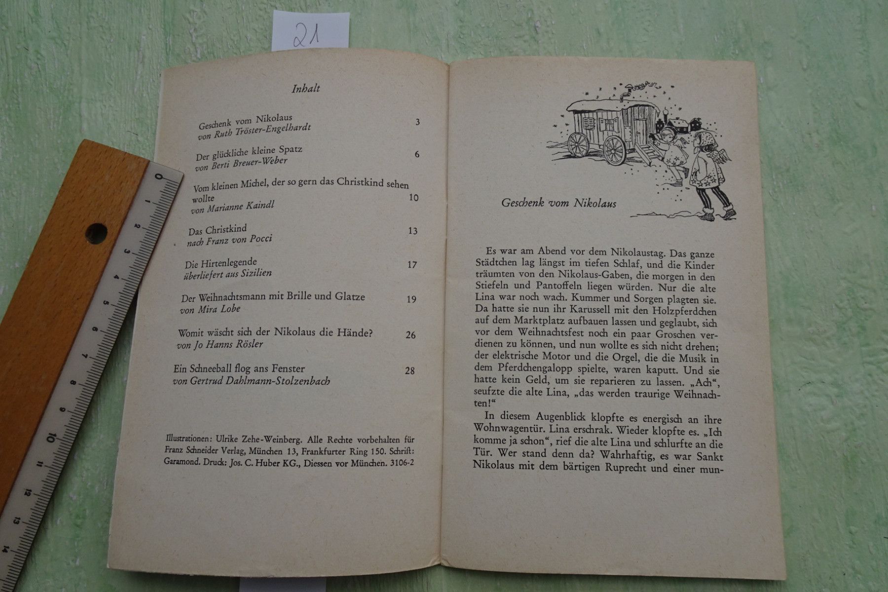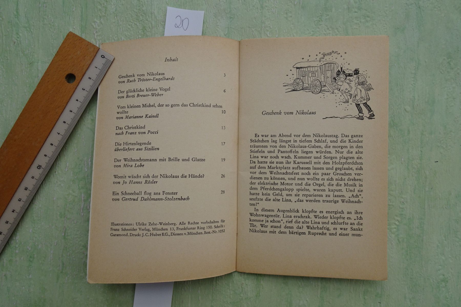 Bilderbücher - Kinderbücher ... Erinnerungen ..... Schneider-Buch Softcover 8 Weihnachtsgeschichten Umschlag : Susa Schlieper, Illustration : Marga Karlson Weihnachtsgeschichten zum Vorlesen und Erzählen Illustrationen : Ulrike Zehe-Weinberg Weihnachtsgedichte zum Aufsagen Die Auswahl besorgte Walte... Mehr