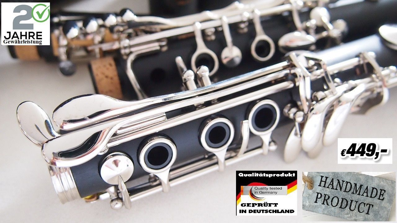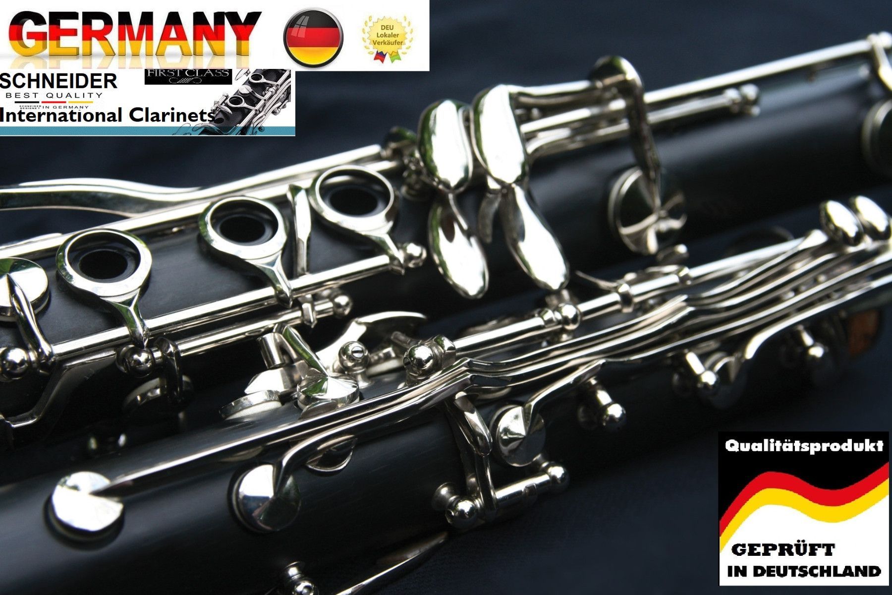 * * * * * * * * Berartung&Service unter 01798193236 Klarinette SCHNEIDER BÖHM SYSTEM KLARINETTE Bb SCHNEIDER SOFORT SPIELBAR MIT SÄMTLICHEM ZUBEHÖR Becher Trichter mit Chromrand optisch sehr ansprechend Klarinette, Deutsches System, Mundstück + Blättchen 17 Klappen Böhm-System · 6 Ringe &