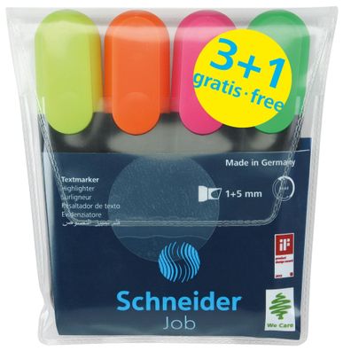 • Schneider Textmarker Job 4er Etui sortiert, 3 + 1 Aktion