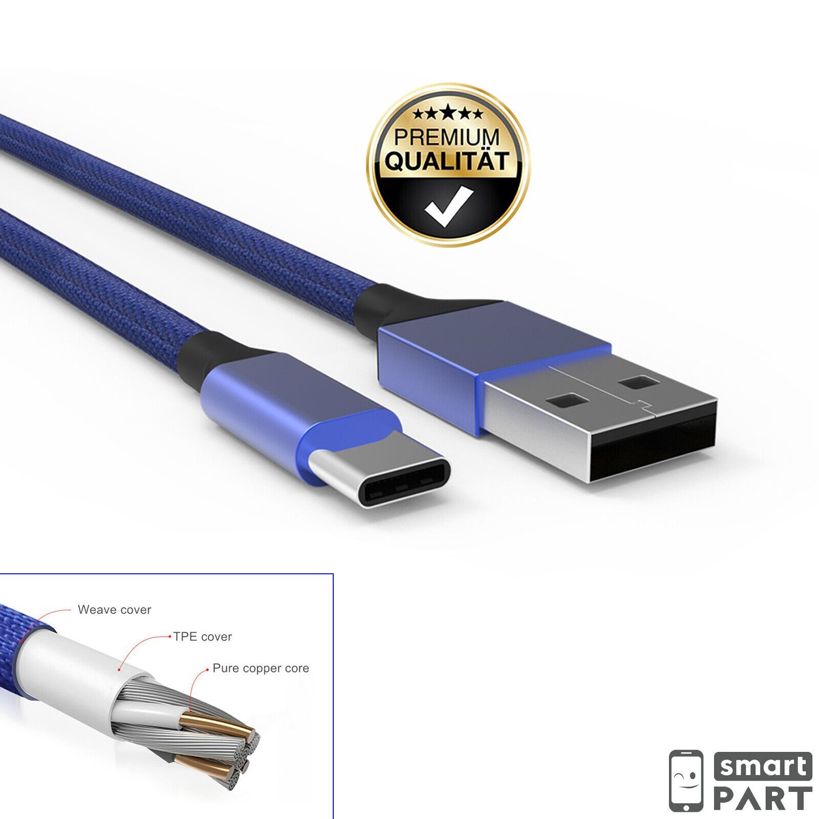 Schnell Ladekabel USB Type C Für Samsung|Huawei|Xiaomi| HIGH SPEED Cable Blau