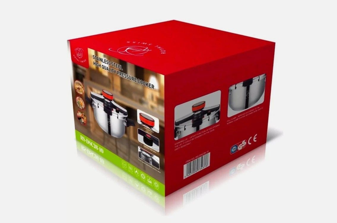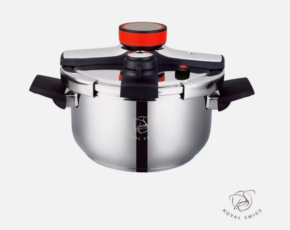 Royal Swiss Schnellkochtopf – Professionelles Kochen im Handumdrehen Erleben Sie, wie einfach und raffiniert schnelles Kochen sein kann – mit dem Schnellkochtopf von Royal Swiss. Mit nur einem Handgriff lässt sich der Topf sicher verschließen. Schnell, effizient und ideal für den täglichen Einsatz.
